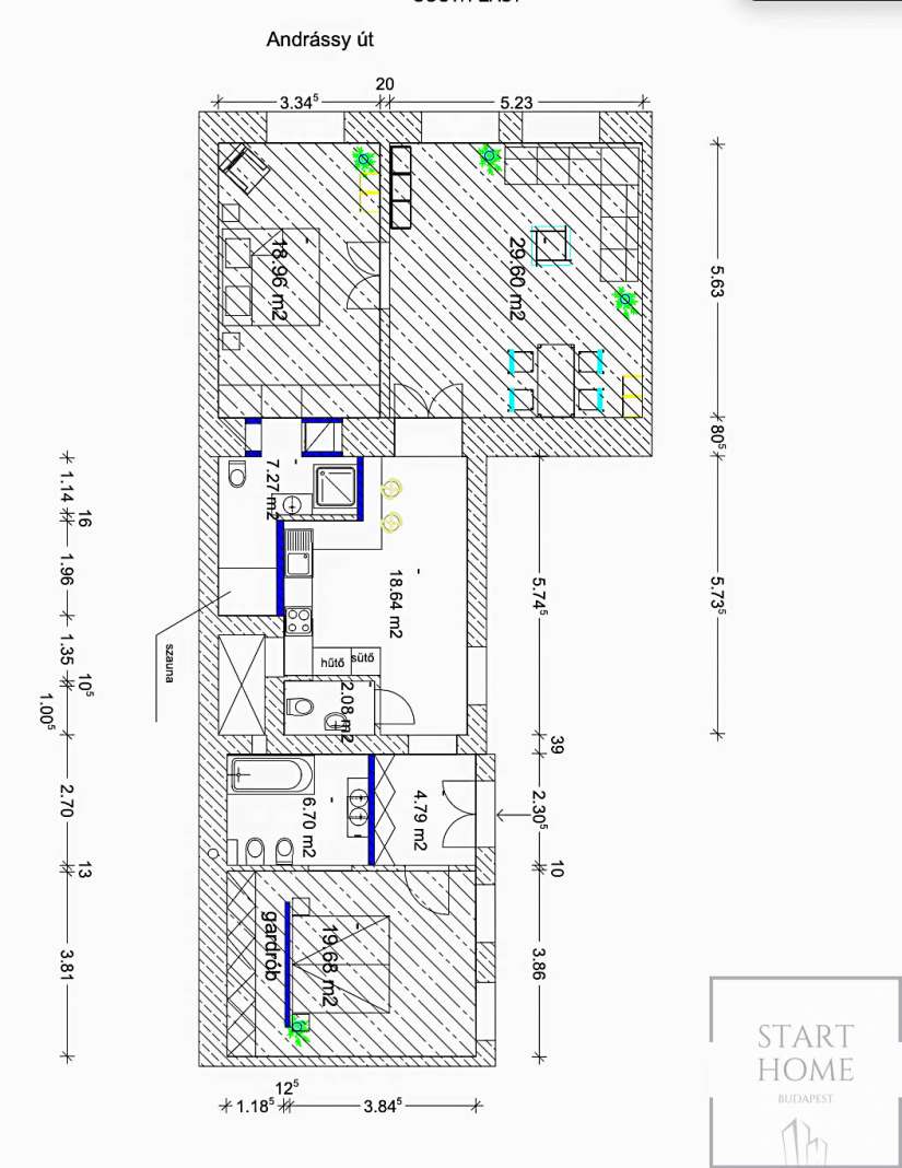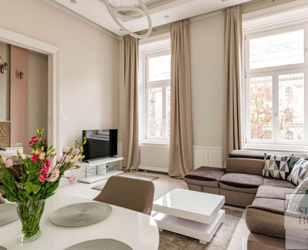 For rent is a 103 sqm, 3-bedroom, premium category, double-comfort, modern property in the heart of the city centre, close to the Opera, on Andrássy Road.
