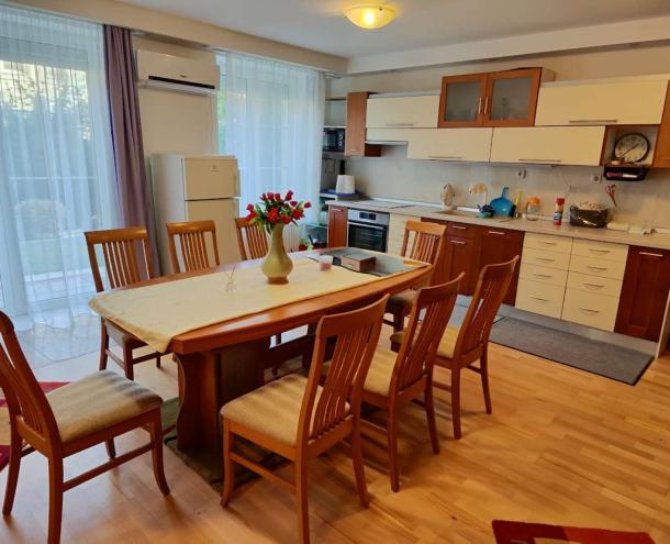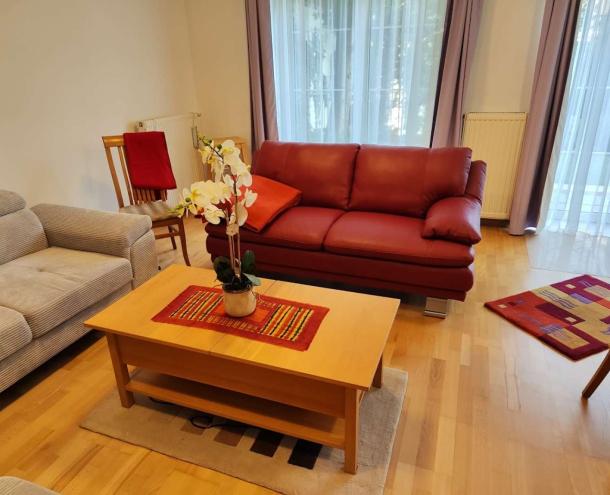 For single people or young couples, I offer this apartment for rent on the ground floor (with elevator) of a 4 apartment building built in 2000. The apartment is an 87 sqm home with access to a private tiny garden and terrace. The living room, kitchen and dining room are in the same room, the bedroom is separated by interior design .The bathroom has a shower and toilet. The apartment is fully furnished, equipped, has its own gas boiler for heating, air conditioning. The common cost is 15.000,-Ft/month. All utilities are individually metered. The apartment has a garage for one car. Small pets, only dogs, can be brought by prior arrangement.The apartment is ready to move in immediately!