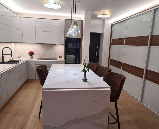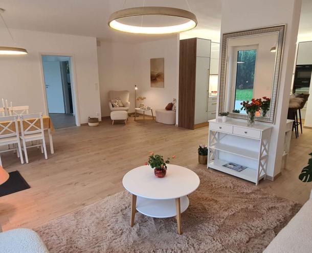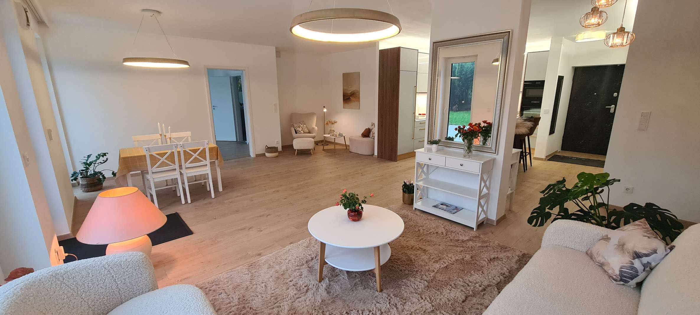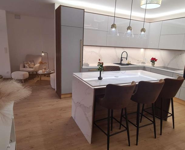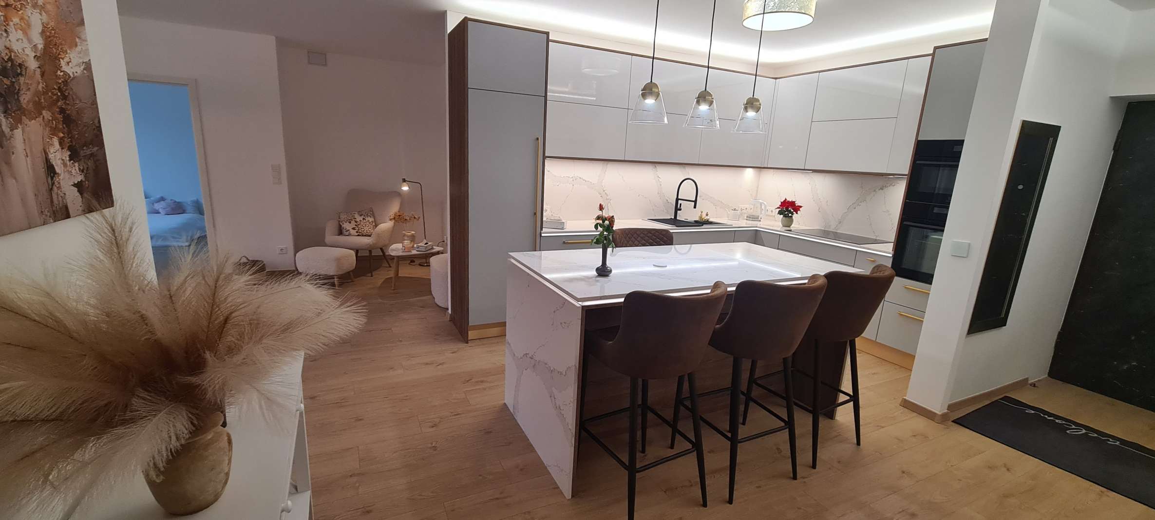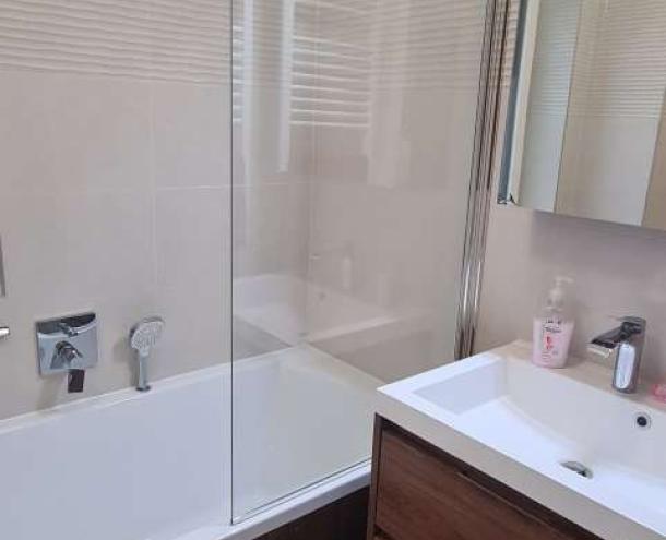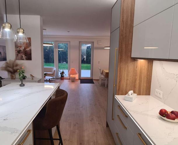 A 105 m² apartment with garden access is available for rent in a 4-apartment condominium built in 2025. The apartment has an open-plan kitchen and living room, 3 bedrooms and two bathrooms. The living room opens directly onto a 60 sqm terrace and from there to a 500 sqm garden for exclusive use. Partially furnished with the furniture shown in the pictures. Heating and cooling are provided by a heat pump ceiling and floor heating and cooling system, which can be operated remotely using the Loxon smart home system. All windows are equipped with electric shutters. The kitchen is equipped with high-quality appliances. (Refrigerator, dishwasher, larger-than-average induction hob, steam oven and combi microwave oven, extractor fan, washing machine, dryer) A parking space equipped with an electric charger for two cars and a 3 sqm storage room can be rented for an additional 76,000 HUF/month.. Common cost is : 35.000,- HUF/month, The apartment is ready to move into immediately.
