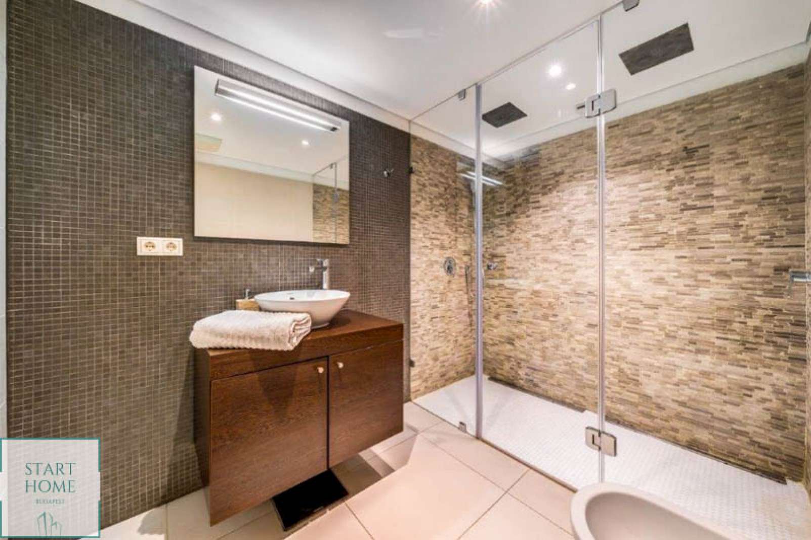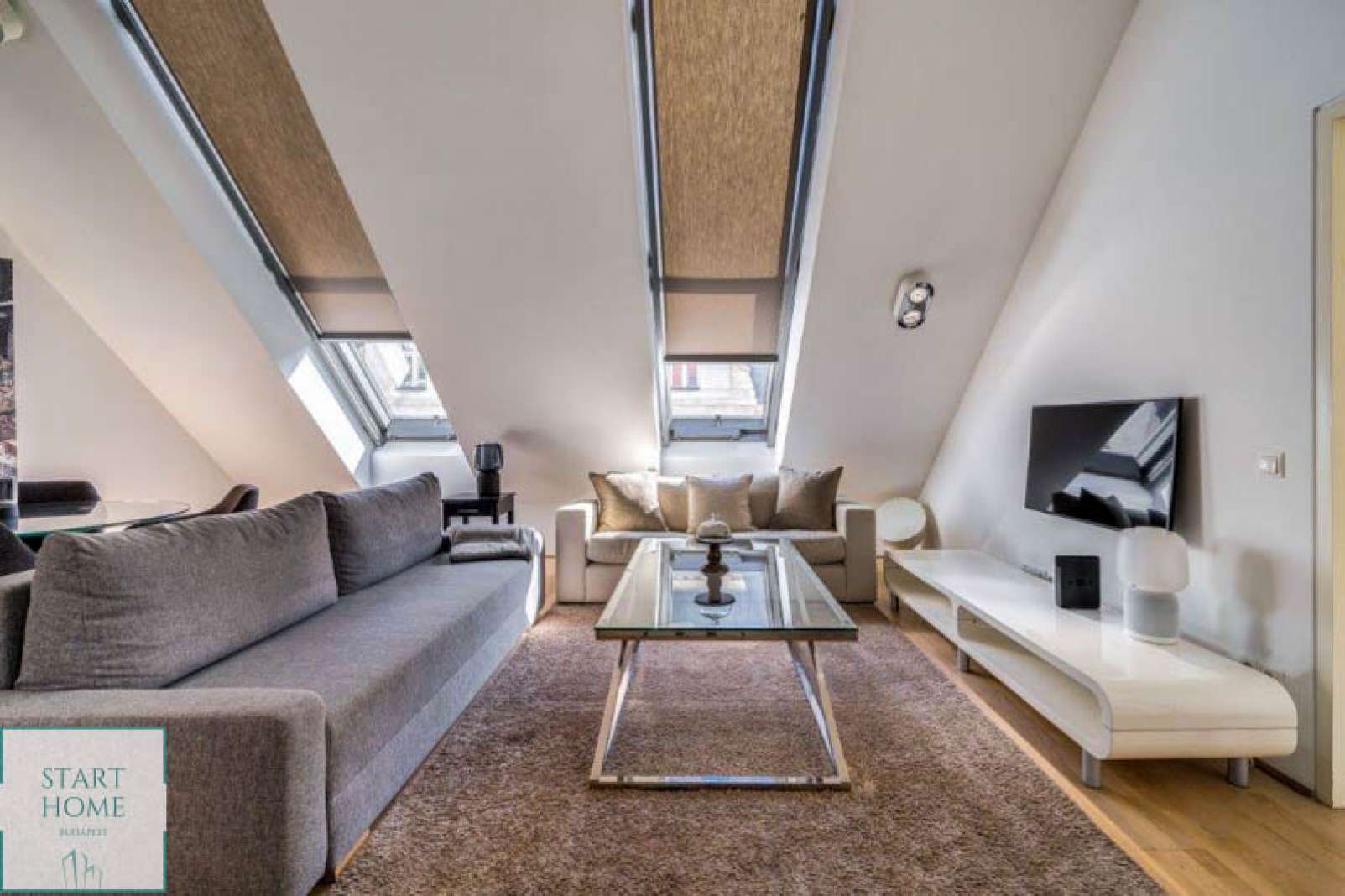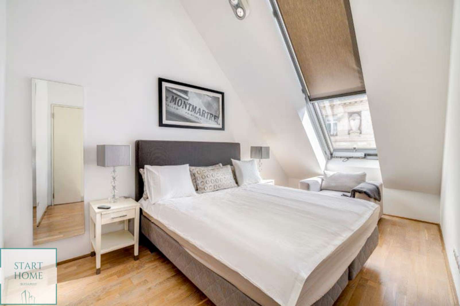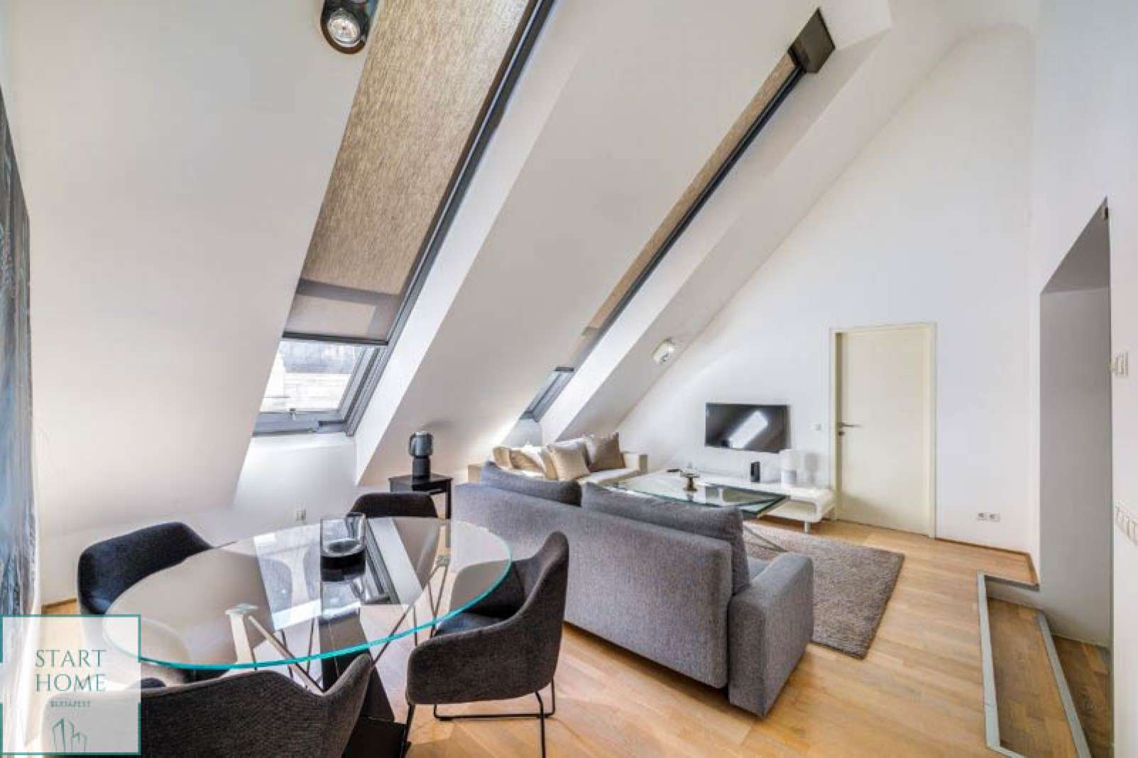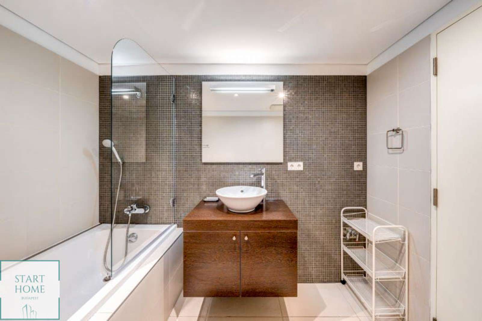 A luxury apartment on the 5th floor (with elevator) is available for rent in the heart of downtown Budapest, in the beautifully renovated DOROTTYA Palace. The apartment has ceiling heating, air conditioning, and is furnished with modern, high-quality furniture. The 65 sqm apartment has a separate kitchen, living room, 2 bedrooms, 2 bathrooms, one with a bathtub and the other with a shower. The apartment comes with a parking space in the camera-monitored underground garage, which can be rented separately. The building offers residents 24-hour concierge service, laundry, wellness center, cleaning service, chauffeur service, café, and luxury shops.