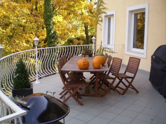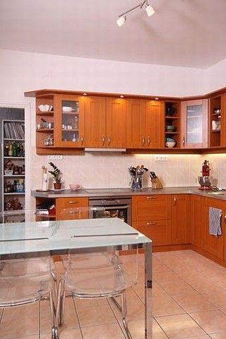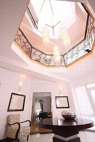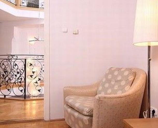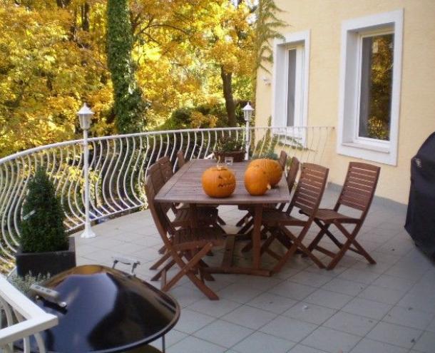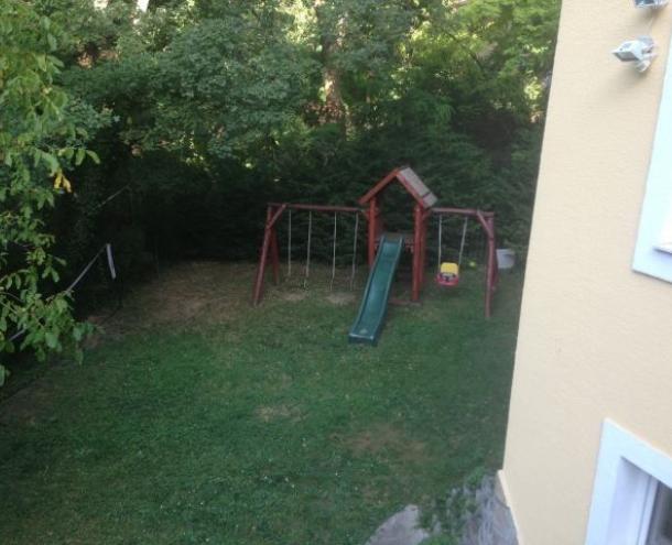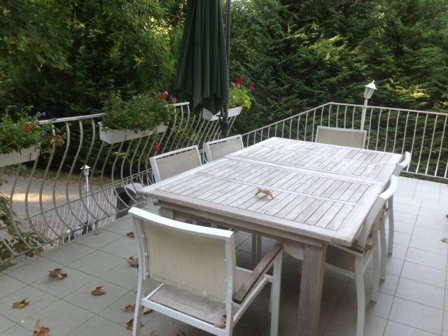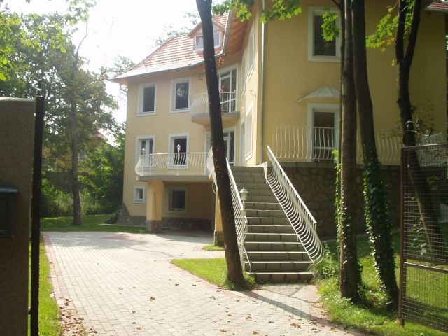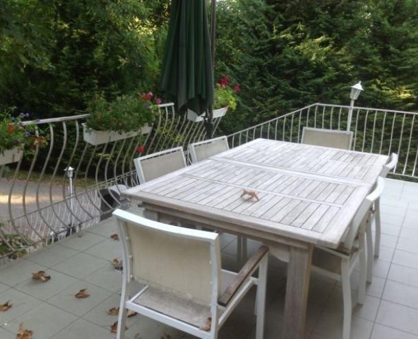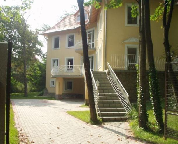 560 sqm 4-storey detached house for rent, built in 2005, in 1795 sqm garden. Lower level: garage for 3 cars, 1 room, kitchen, bathroom, laundry room/fitness room. Half floor: 53 sqm living room with fireplace, large terrace with garden access, 30 sqm hall with glass cupola, eat-in-kitchen, guest room, 2 bathrooms, terrace. 1st floor: 4 bedrooms, study, 2 bathrooms, balcony. Attic: 2 bedrooms, bathroom. Parquet covering, alarm system, air-cond., aut. gates. The house is unfurnished. Photo! Pets are welcome!