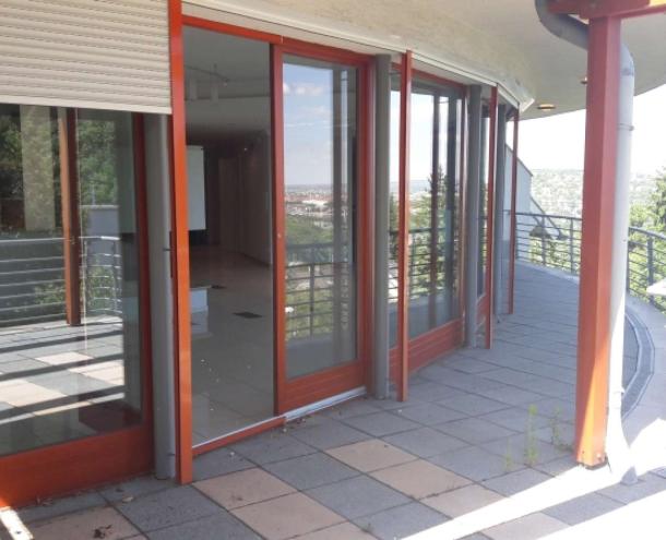 PENTHOUSE FLAT FOR RENT WITH NICE VIEW! 220 sqm 2-storey, unfurnished luxury penthouse flat for rent in a 3-flat house (lift), built in 2004. 1st floor: 1 large living room with fireplace and terrace connection (60sqm), 2 bedrooms, equipped kitchen with pantry, 1 bathroom, built-in cupboards. 2nd floor: 1 living room with terrace connection, 1 bedroom, 1 bathroom. Beautiful panoramic view, garage for 2 cars and 2 storages (12-12 sqm), heated drive-way! . Common cost: 35.000,- HUF/month. No pets! Floor-plan!