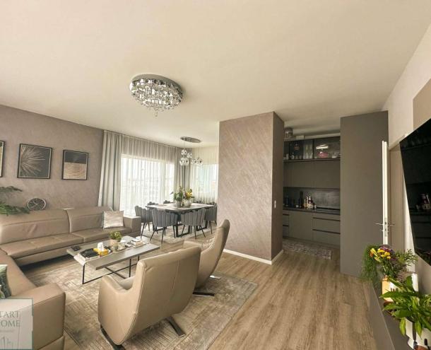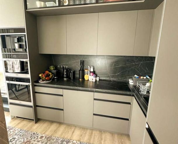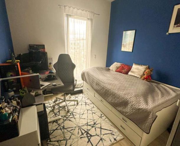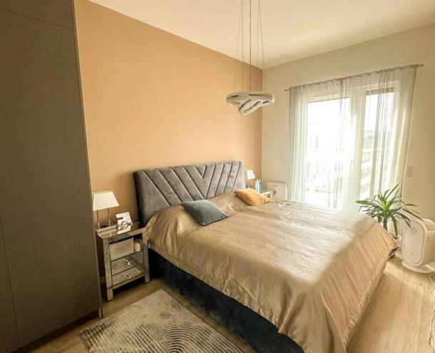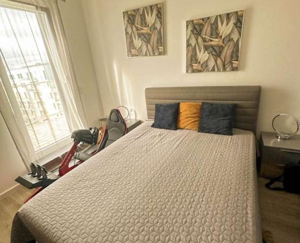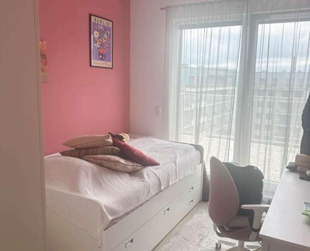The apartment has a new custom built-in kitchen furniture with build in cooffe machine. The apartment is fully furnished and can be rented fully equipped.