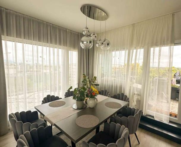 Layout of the apartment: living room with american kitchen, 4 bedrooms, 2 bathrooms (with bath and shower), 1 guest toilet +40 sqm terrace