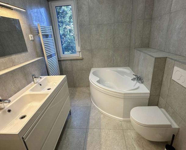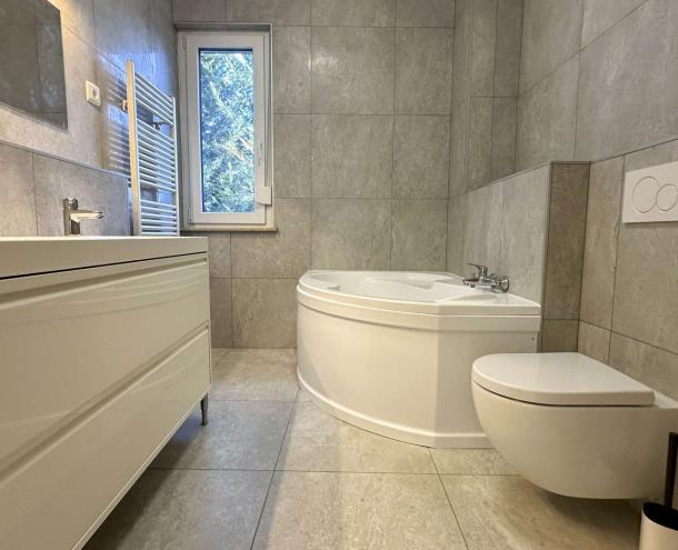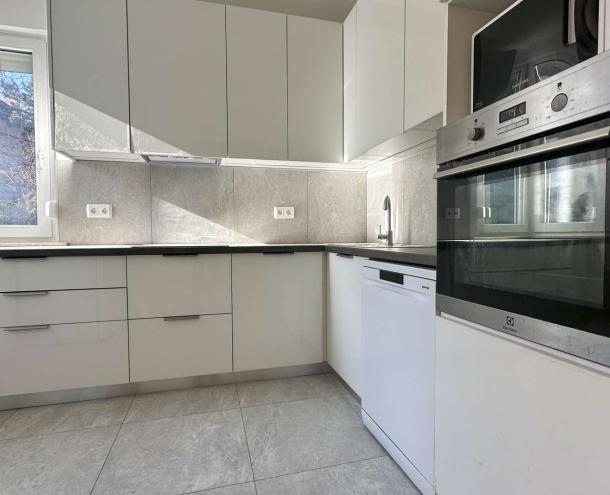 121 sqm flat for rent on 2nd floor (elevator) in a 5-flat house, built in 2000. renovated in 2025. The apartment consists of a living room, 3 bedrooms, 2 bathrooms and a Terrace. It is available unfurnished. Garage for 1 car + parking space belong to it. Extras: Air conditioned, electrical shutters, mosquito net. The common cost with heating: 250 EURO/month. Vodafone Internet. NO PETS!