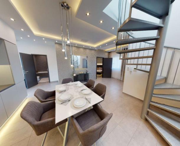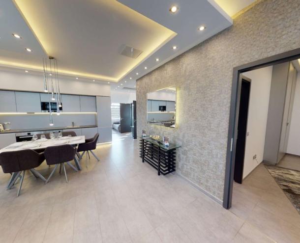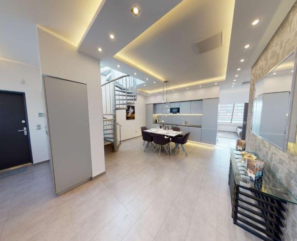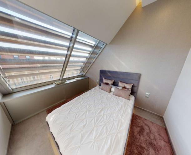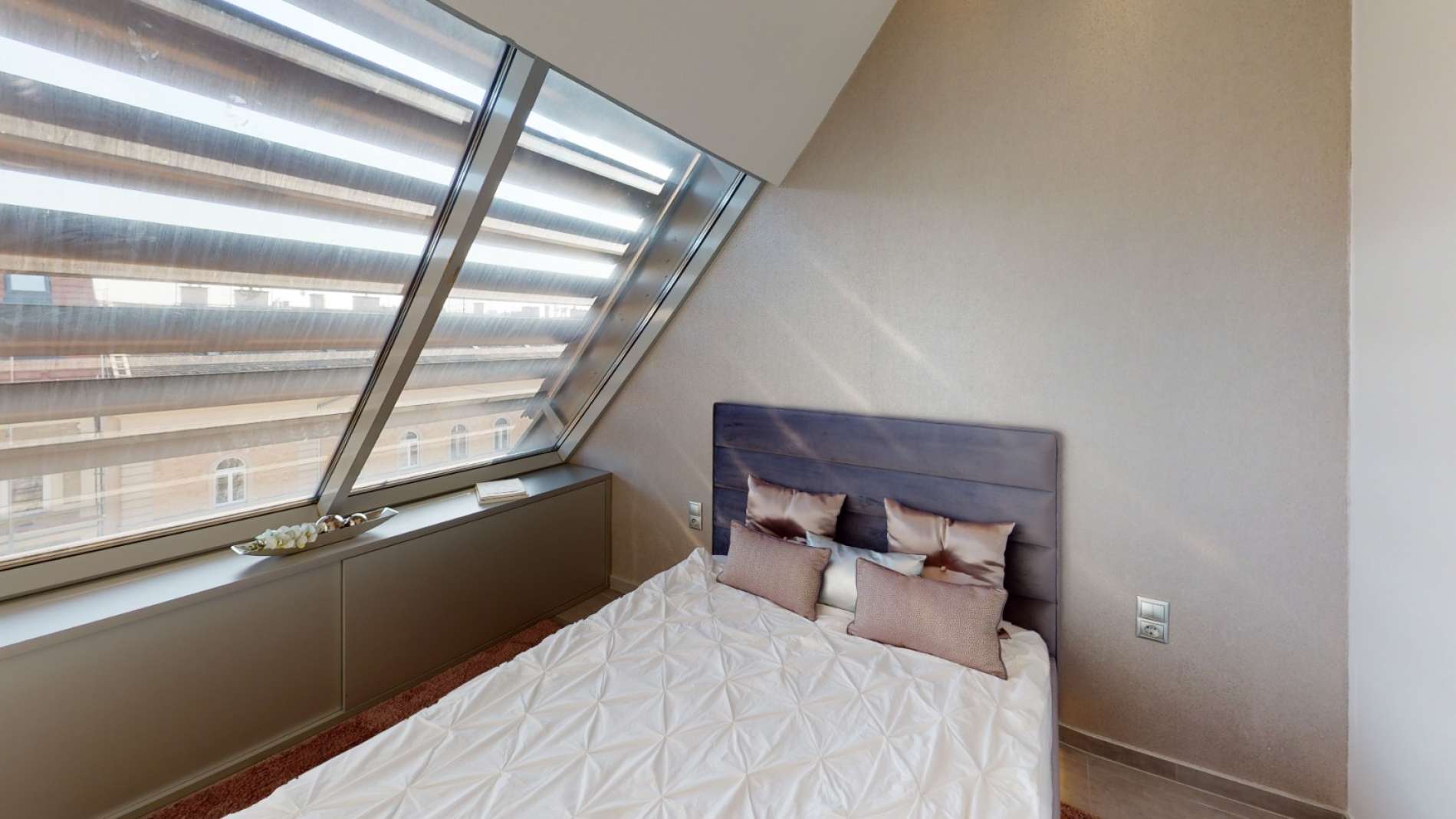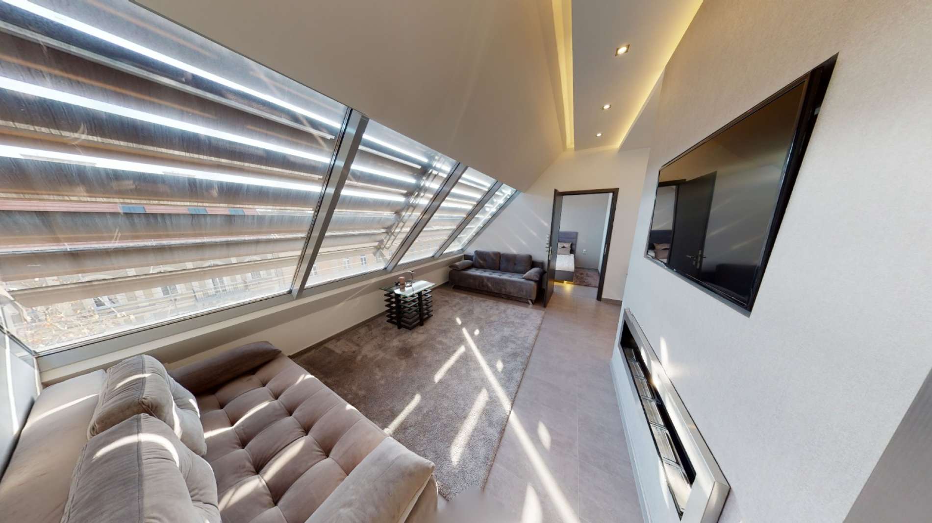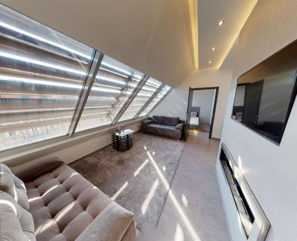 BRAND NEW FLAT WITH ROOF TERRACE! Newly built 100 sqm luxury furnished flat for rent on 5th floor (elevator) in a totally renovated building. The apartment consists of a living room, an open-plan kitchen, 3 bedrooms, 1 bathroom, 1 shower, own roof terrace with view. Automatic ventilation system, A/C system, floor heating, fireplace working with bioethanol, electric aluminium shutters on all windows. You can bring a pet, but in this case a 3-month deposit must be paid! Flat-rate utility cost: 80,000 HUF/month ((Internet, common costs, heating, water, electricity with annual billing) . Floorplan! From 1st December 2025.
