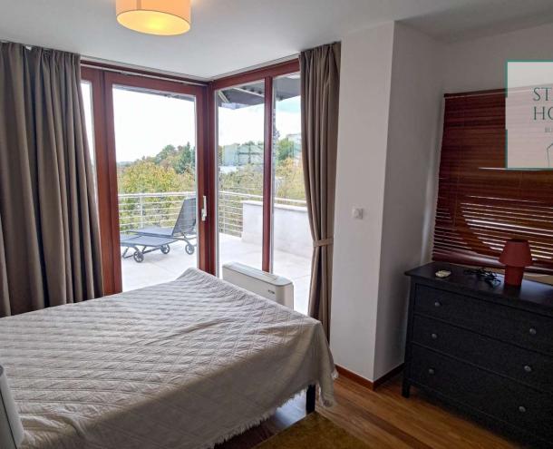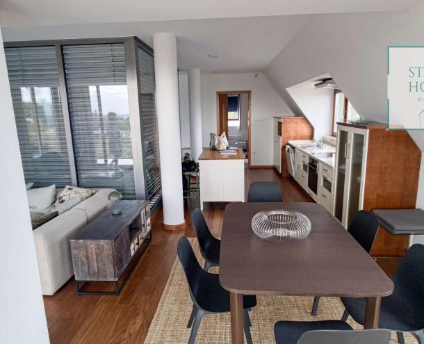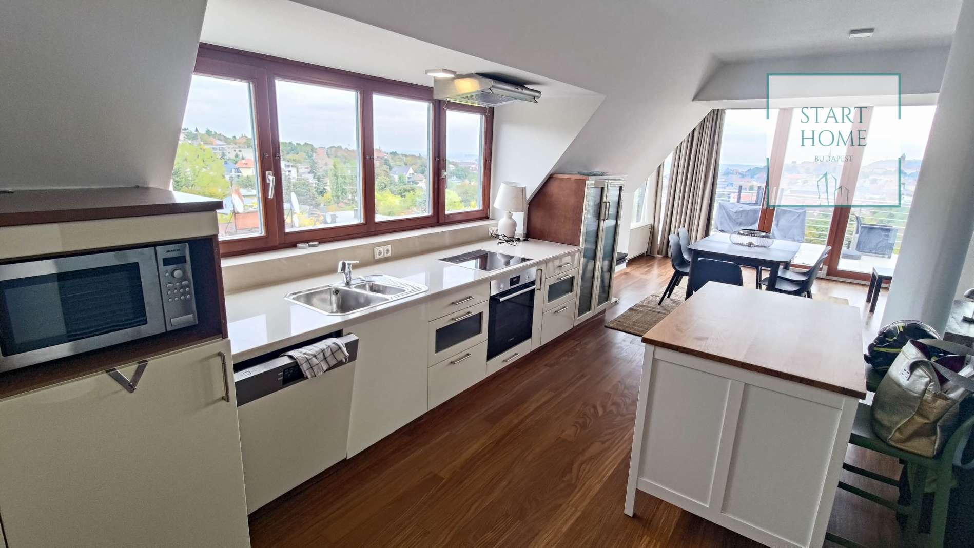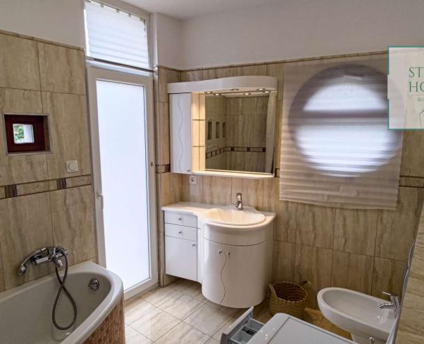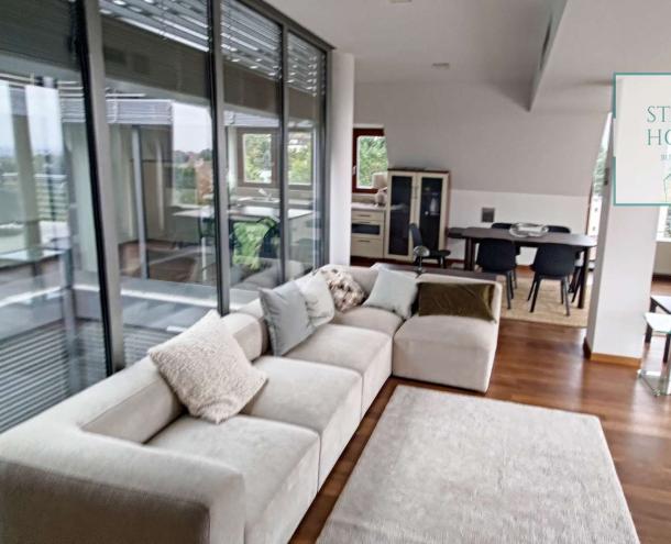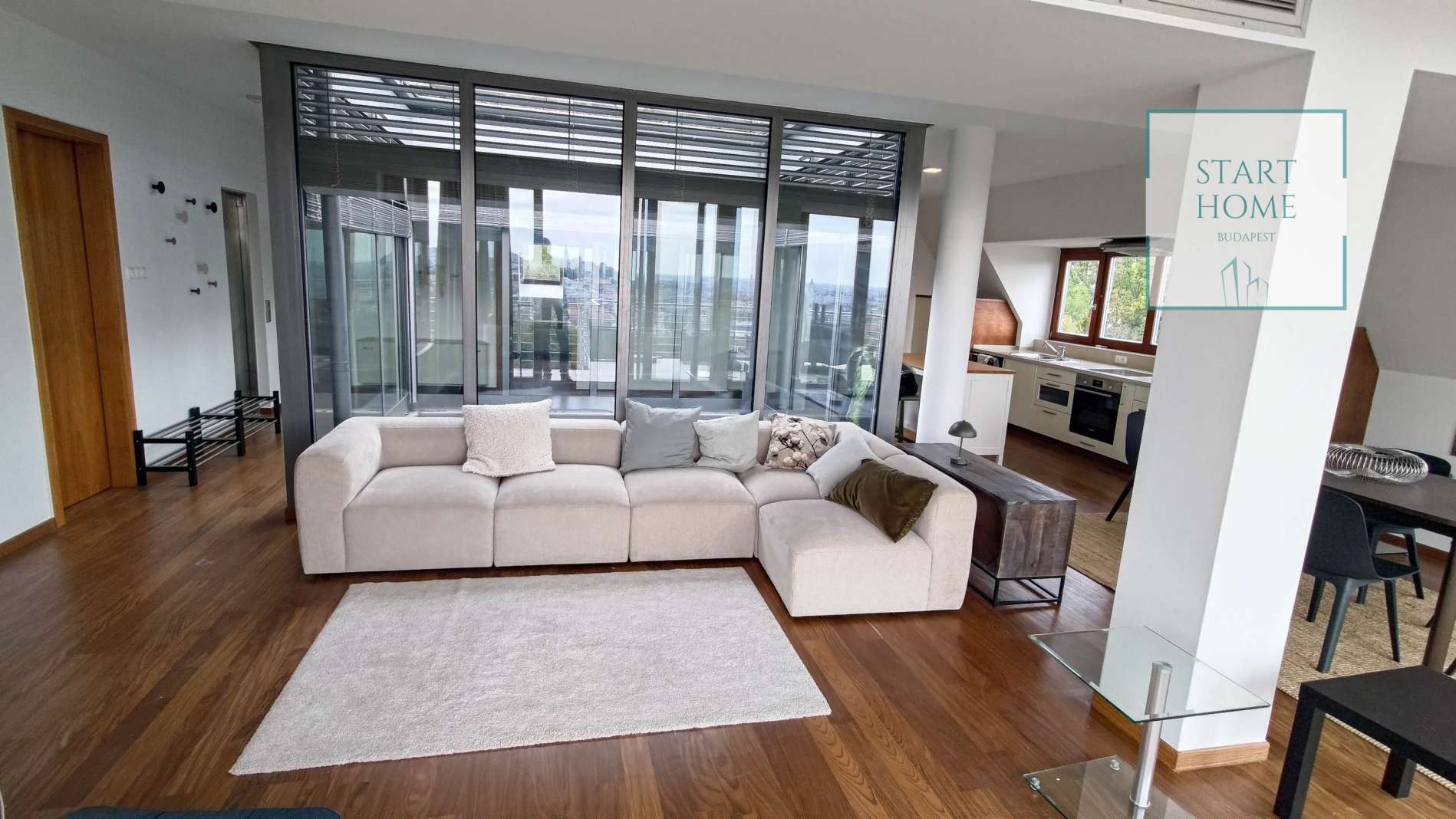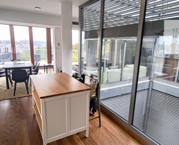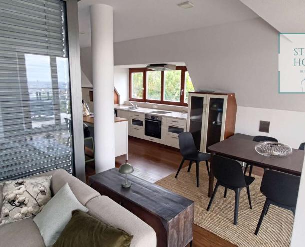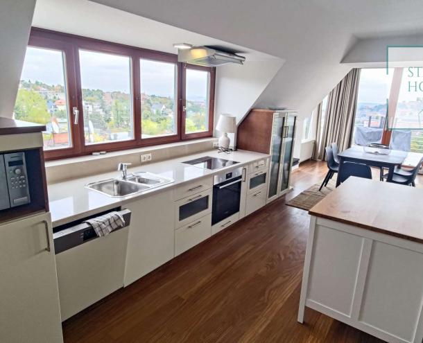PENTHOUSE WITH PRIVATE ROOF TERRACE!! 140 sqm penthouse flat for rent on 3rd floor (lift) in a 7-flat house, built in 2003. The apartment consists of a living room, 3 bedrooms, open-plan kitchen, 2 bathrooms, 30 sqm terrace + 90 sqm roof terrace, beautiful view to the city (Mathias Church, Castle, Danube). A/C, fan coil, alarm system. The flat is furnished right now, but it can be rented without furniture. Storage room and garage for 2 cars belong to it. Common cost 112 000 HUF/month incl utility flat rate (excluding electricity). The rental fee contains the utility charges! NO PETS!