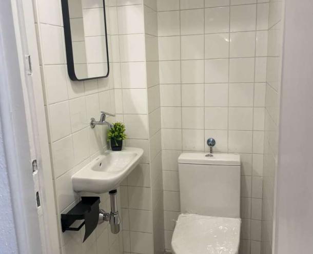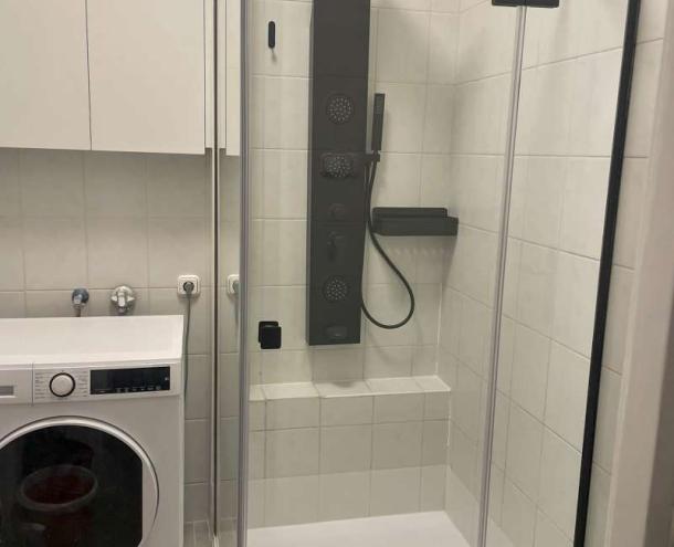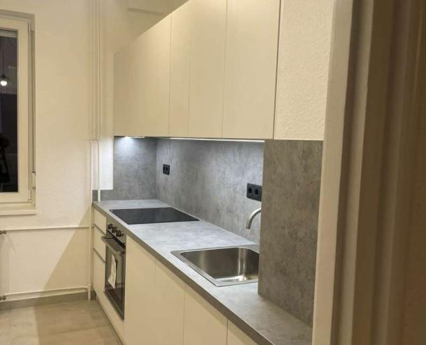 The property has been fully renovated to a high standard, featuring a modern interior design, large windows, and excellent natural light throughout. A small loggia adds extra charm and functionality.