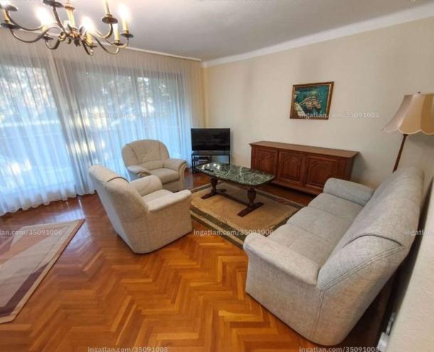 FLAT FOR RENT CLOSE TO SHOPING CENTER AND PUBLIC TRANPORTATION!!! 106 sqm flat for rent on upper ground floor in a 4-flat house, built in 1986, in a shared garden, close to Törökvész street. The apartment consists of a living room with dining area and terrace, a sep. kitchen, 2,5 bedrooms, 1 bathroom, 1 shower and 20 sqm terrace with garden access. Available furnished, there are parquet and cold flooring, alarm system, air-cond. The common cost: 15.000 HUF/month, garage for 2 cars (behind each other), shared sauna in the cellar. Pets are not allowed! No common cost. .