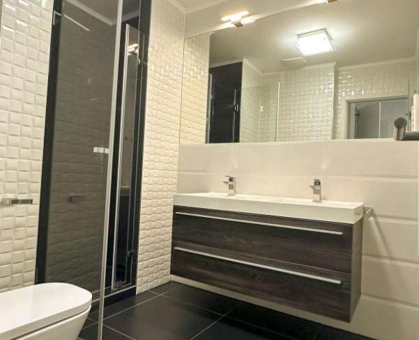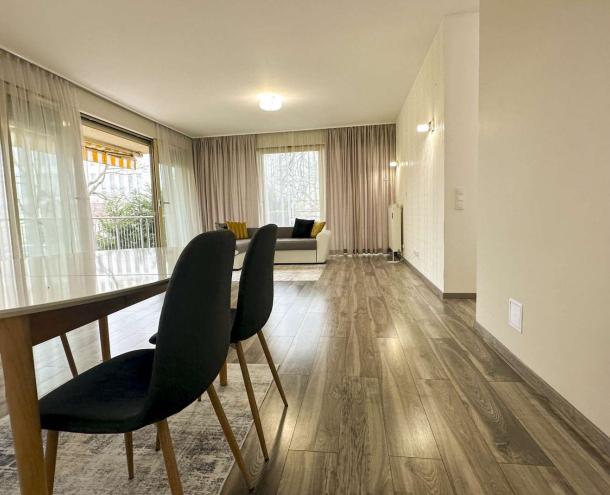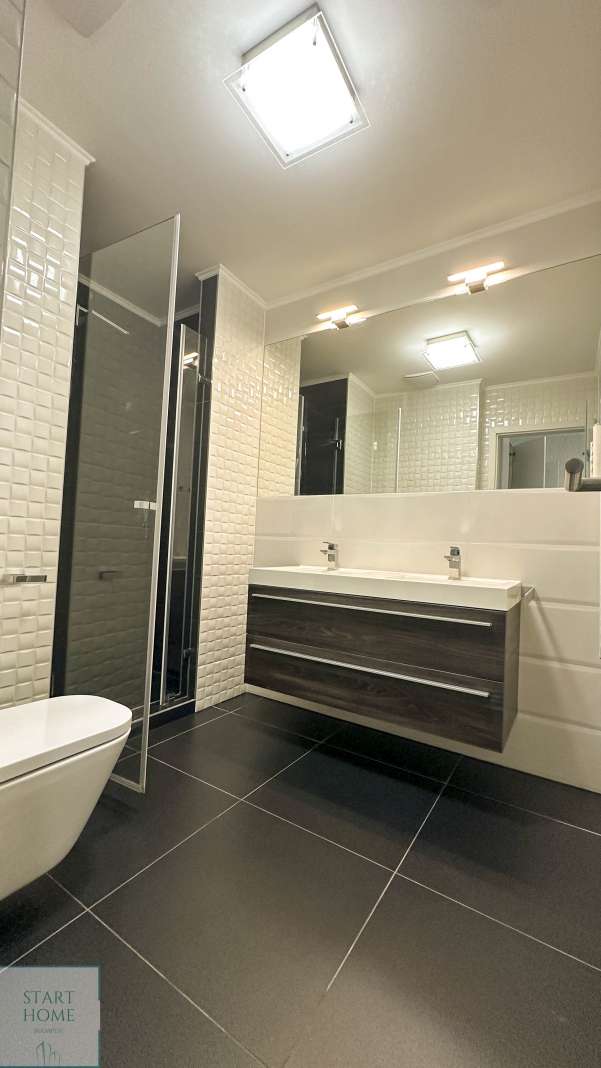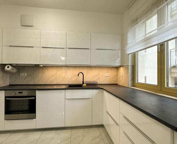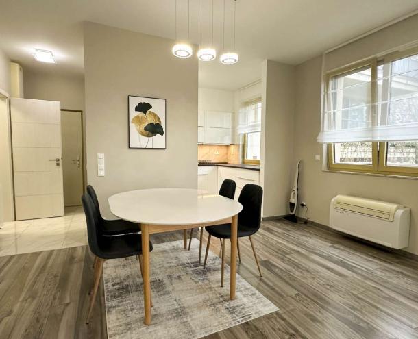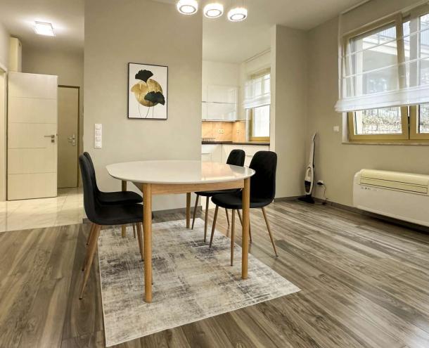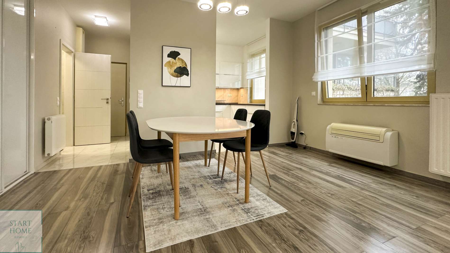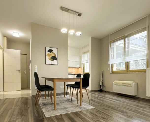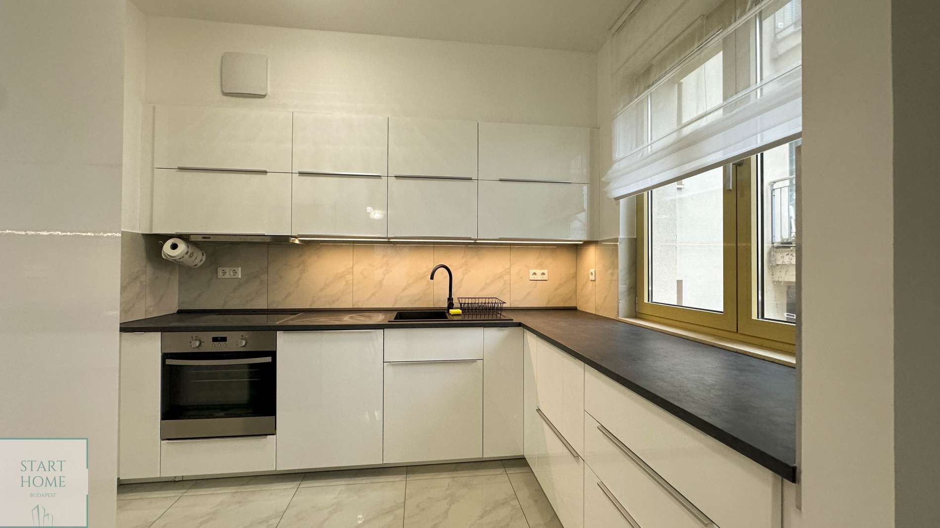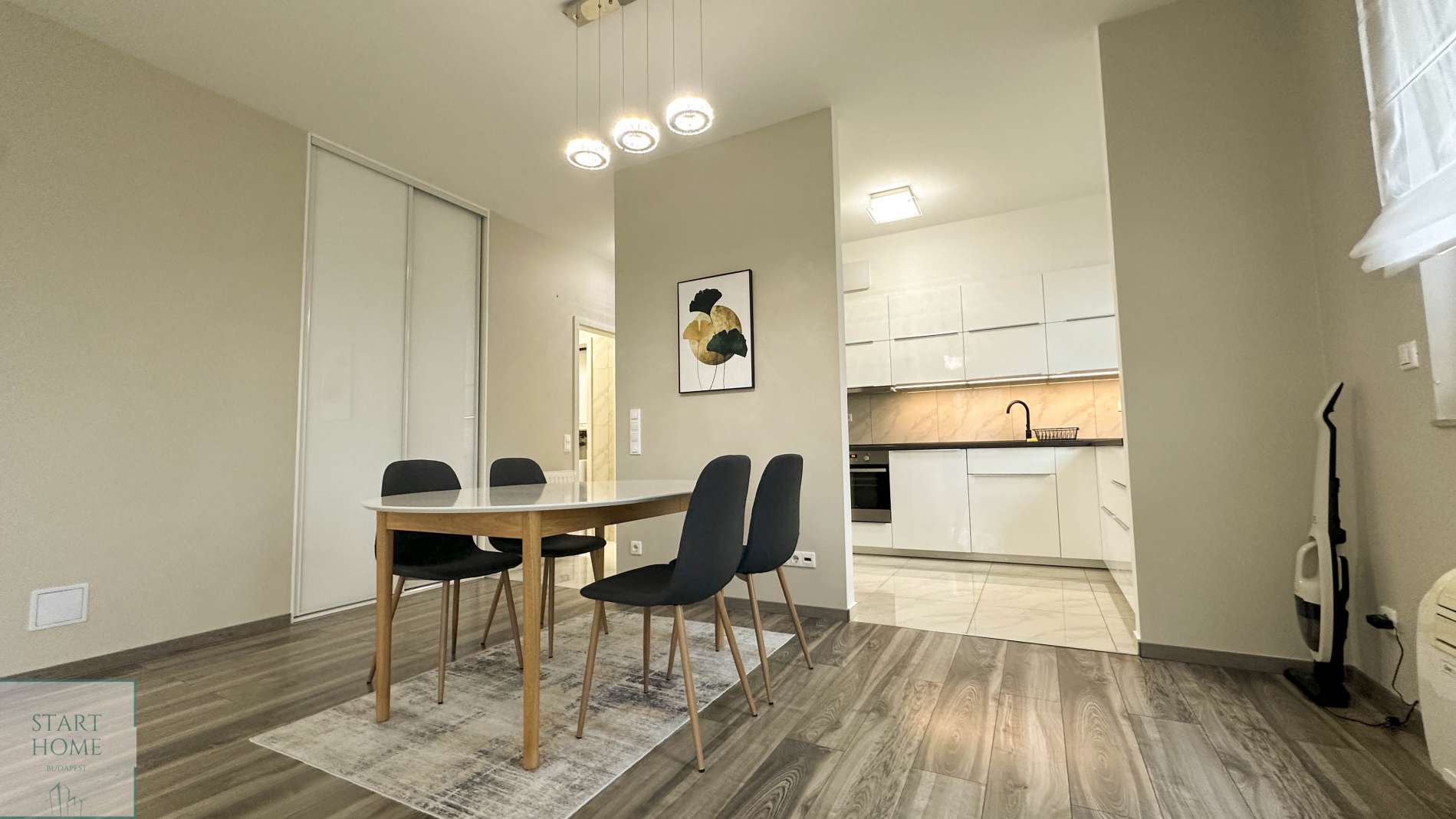 A 120 m2 first floor apartment with garage and storage space is available for rent in the Szemlőhegy Liget residential park in Budapest's 2nd district. Equipped kitchen, large open-plan dining room and living room, 3 bedrooms, 2 bathrooms, separate toilet. Large glass surfaces, modern appearance, partially furnished. The residential park, which is also popular with foreigners, provides security services and maintenance of common areas. There is a playground for children within the fence, shopping centers, sports fields, and green areas nearby. The property is also easily accessible by public transport. Cooling provided by air conditioning in the living room. Electrical shutters and mosquito nets on all windows. Renovated, ready to move in at any time.
