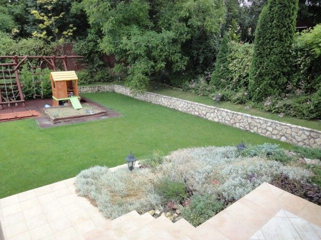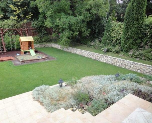 BEAUTIFUL GARDEN WITH SWIMMING-POOL!!! 150 sqm detached 3-level house is for rent in Szépvölgy, built in 2000, in 800 sqm garden. Middle level: there is a living room with 70 sqm terrace and garden connection, open-plan kitchen, 1 bathroom with bathtub and separated toilet. Upper level: 2 bedrooms (20 and 25 sqm) with balconies, walk-in closet, 1 bathroom with shower cabin. Swimming-pool, jacuzzi and playground for children can be found in the nice garden. Lower level: 1 sauna, shower, separated toilet. This part of the house could be suitable for guests. There is a garage for 2 cars, can park after each other, or there is a parking lot inside the garden for 2 more cars. The house is available empty or furnished. Pets are welcome (according to the size of the pets)!