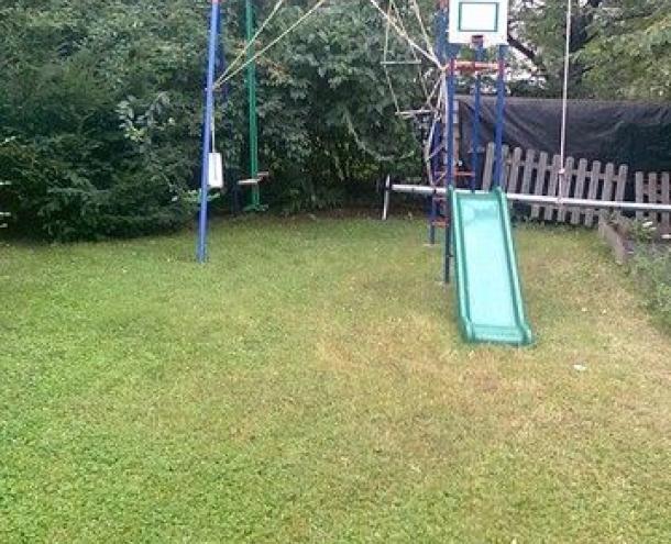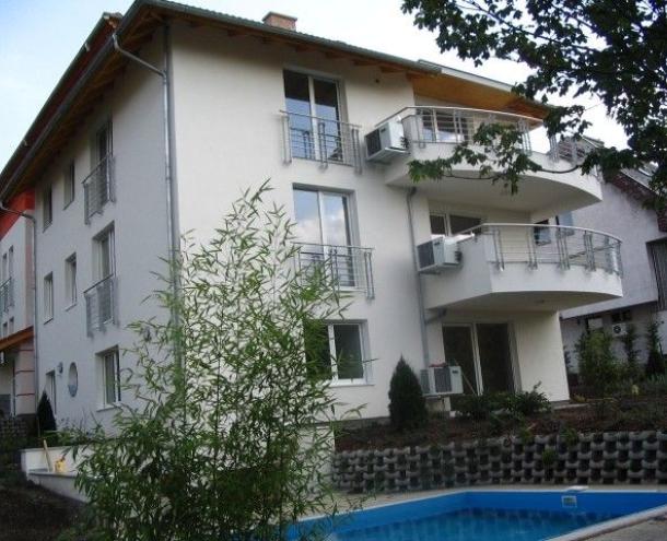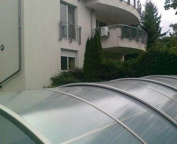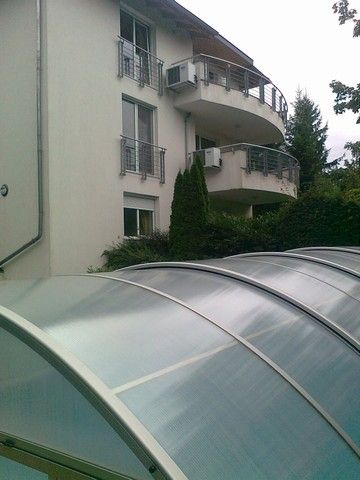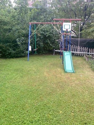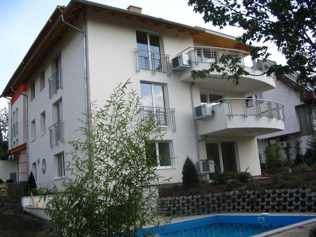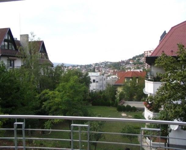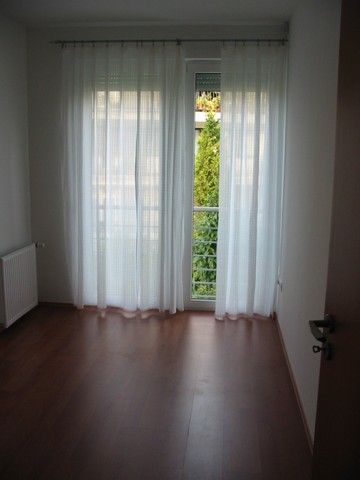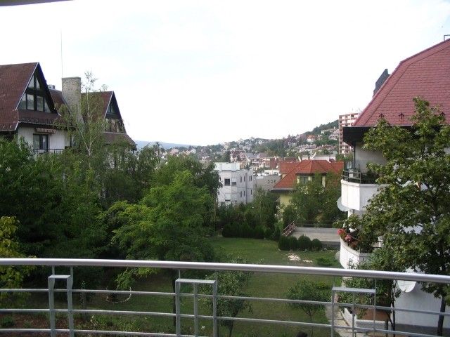 120 sqm flat for rent on 1st floor (elevator) in a 6-flat house, built in 2005. The apartment consists of a large living room with fireplace and dining area, balcony with panoramic view, eat-in-kitchen with pantry, 3 bedrooms, 1 bathroom and 1 shower. The flat is partly furnished (can be totally, or empty), air-conditioned, the common cost with heating average: 48.000 HUF/month. Garage for 1 car and a storage room in the cellar belong to it. There are sauna and fitness room in the house, swimming pool and play ground in the garden. Small pets are welcome! Photo! Floorplan!