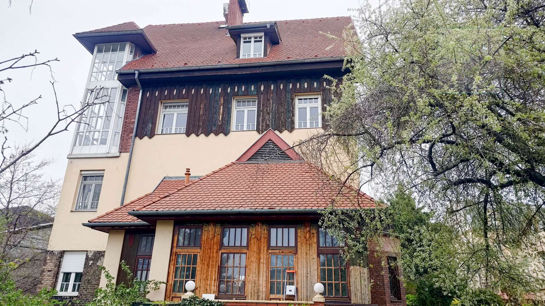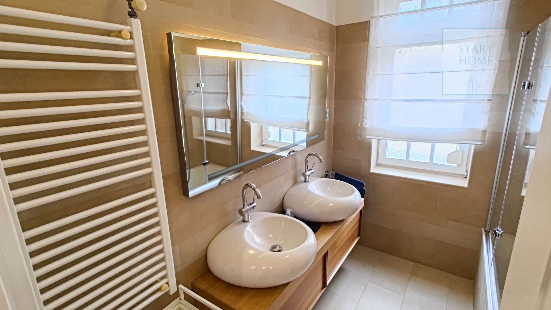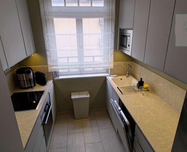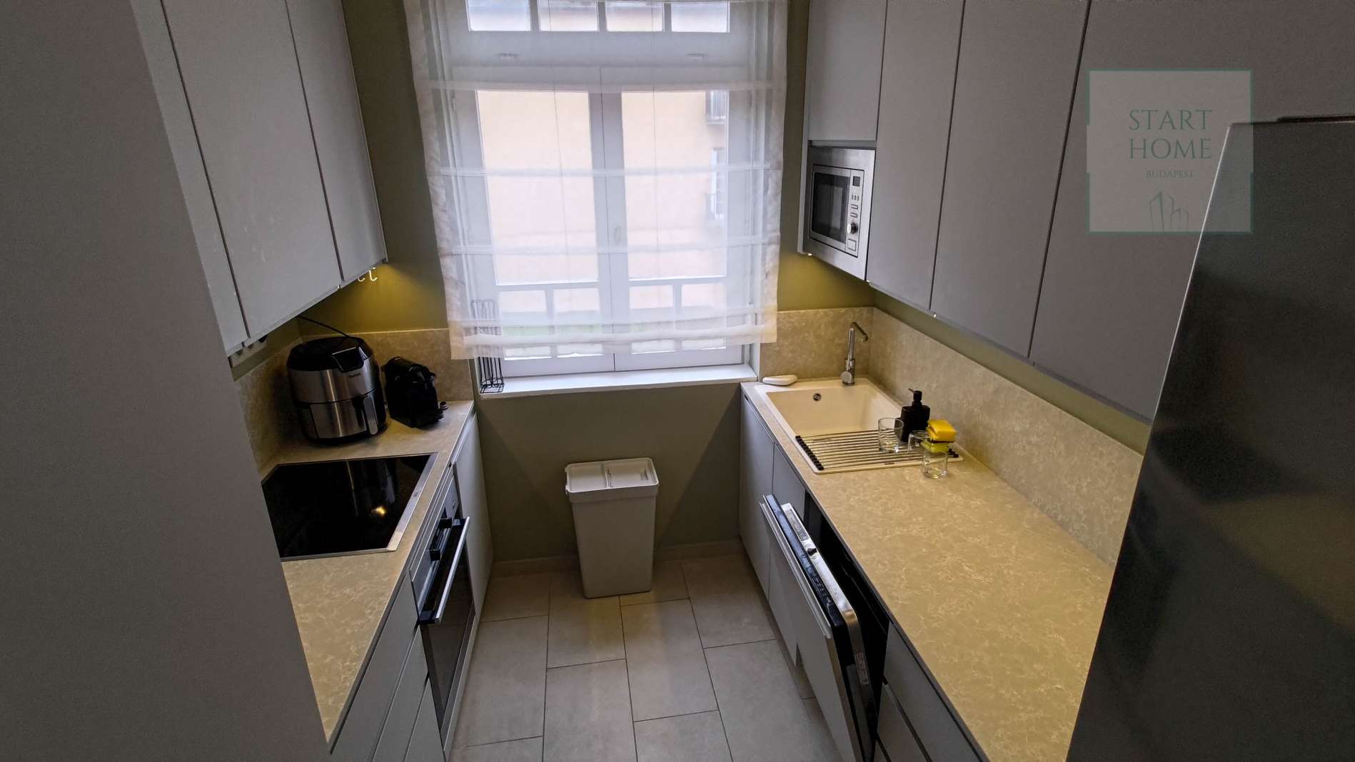 This 100 square meter first floor apartment, furnished with modern furniture, is located in a beautiful villa for rent near the Buda Castle District. The living room and the dining room are in the same space, but the kitchen is closed. From the living room we enter the master bedroom and the second bedroom. The master bedroom leads to the study room, which, thanks to the huge windows, offers a panoramic view of the city. Our own circular heating provides the heat and the air conditioning cools in the summer. The apartment has a 4 sqm balcony, which can be accessed from the front door. Parking is possible on the street (free with an address card) or a separate garage can be rented 50 m from the apartment. Common cost is : 50.000,- HUF/month.