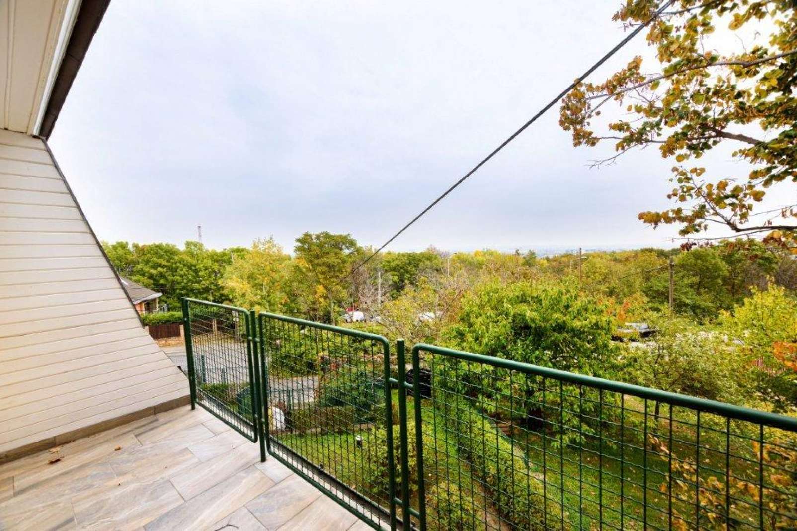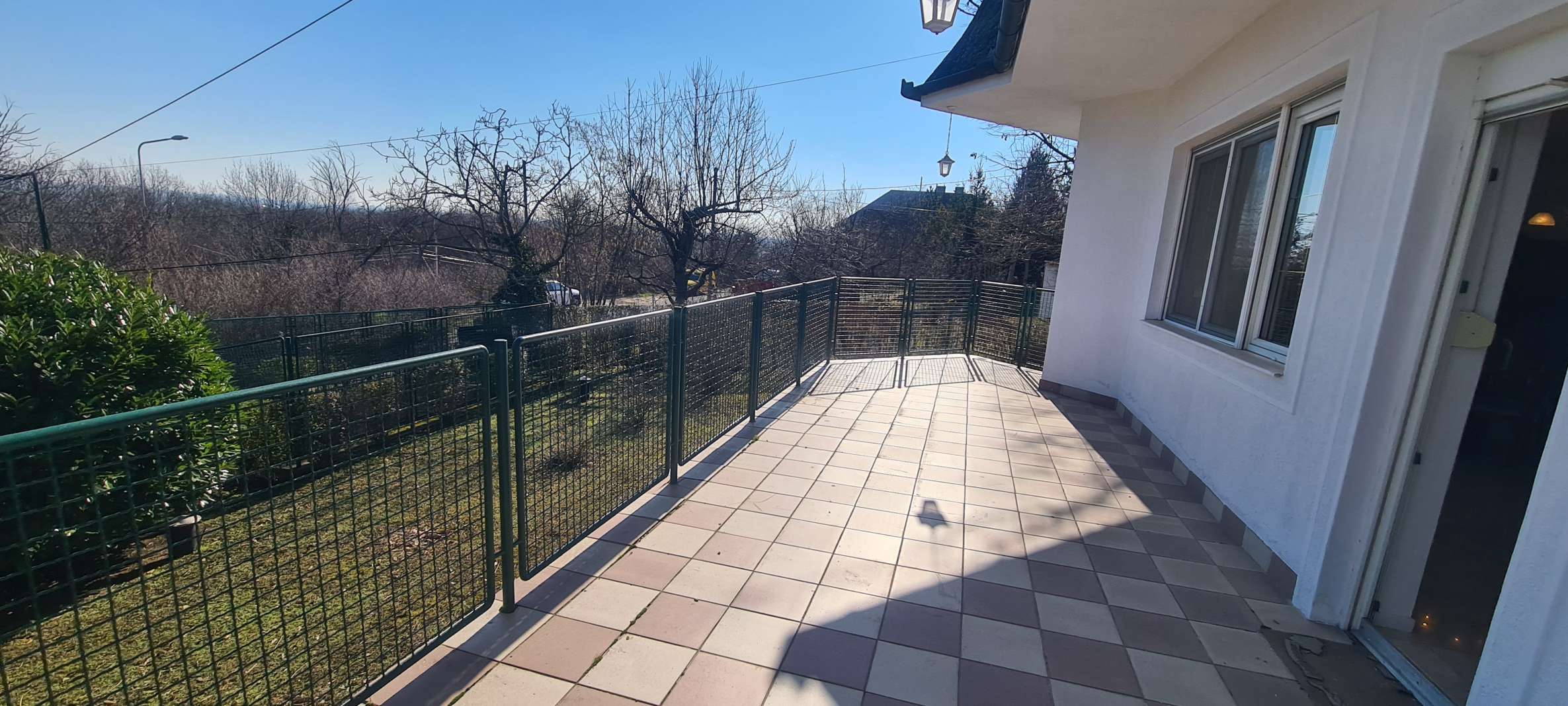 Az ingatlan több terasszal rendelkezik, melyekből kilátás nyílik a városra, a Budai hegyekre, és a gyümölcsfákkal beültetett nagy méretű gondozott kertre.