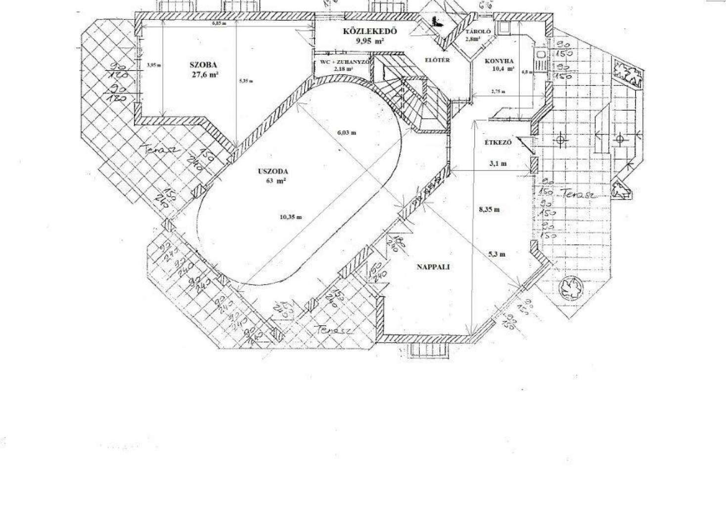 A házban 10×4×1,6 m-es belső medence található, ezért (némi átalakítással) akár panzióként is hasznosítható.