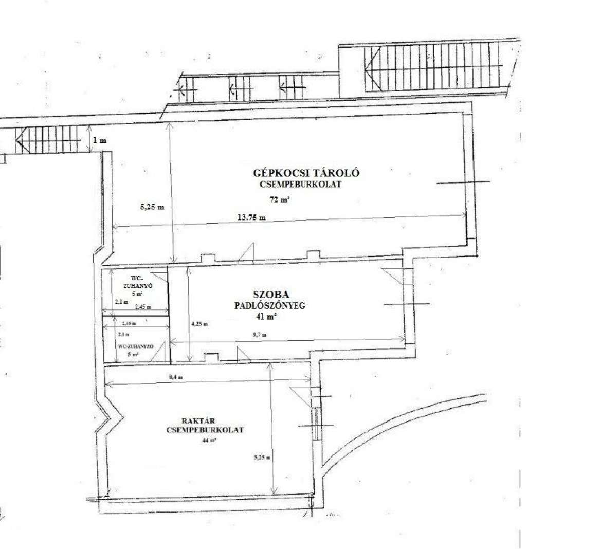 Az ingatlanban jelenleg 6 db gépkocsi tárolására alkalmas fűtött garázs található, mely igény esetén tovább bővíthető. Az épület földszintjén 2 db utcai bejáratú cca. 50 m2-es helyiség található zuhannyal WC-vel ellátva, melyek akár külön kiadhatóak, vagy kisebb vállalkozásokra (pl.: fodrászat, kozmetika, könyvelőiroda stb. ) kiválóan hasznosíthatóak.