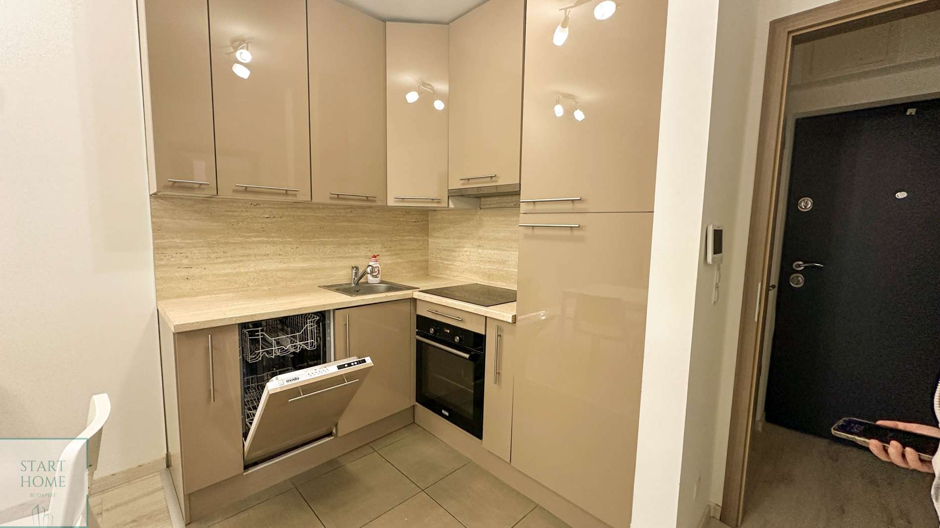A lakás modern felszereltséggel rendelkezik: a mosogatógéppel ellátott, teljesen felszerelt konyha, a légkondicionáló, az elektromos redőnyök, a szúnyoghálók és a biztonsági ajtó garantálják a kényelmet és a biztonságot.