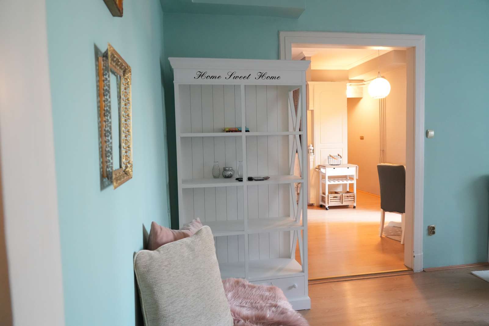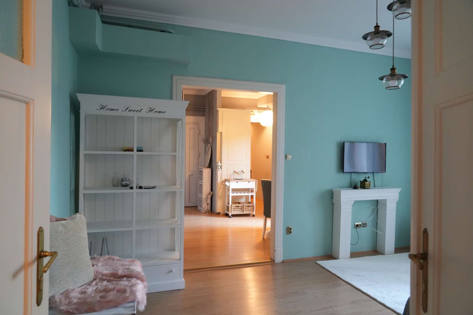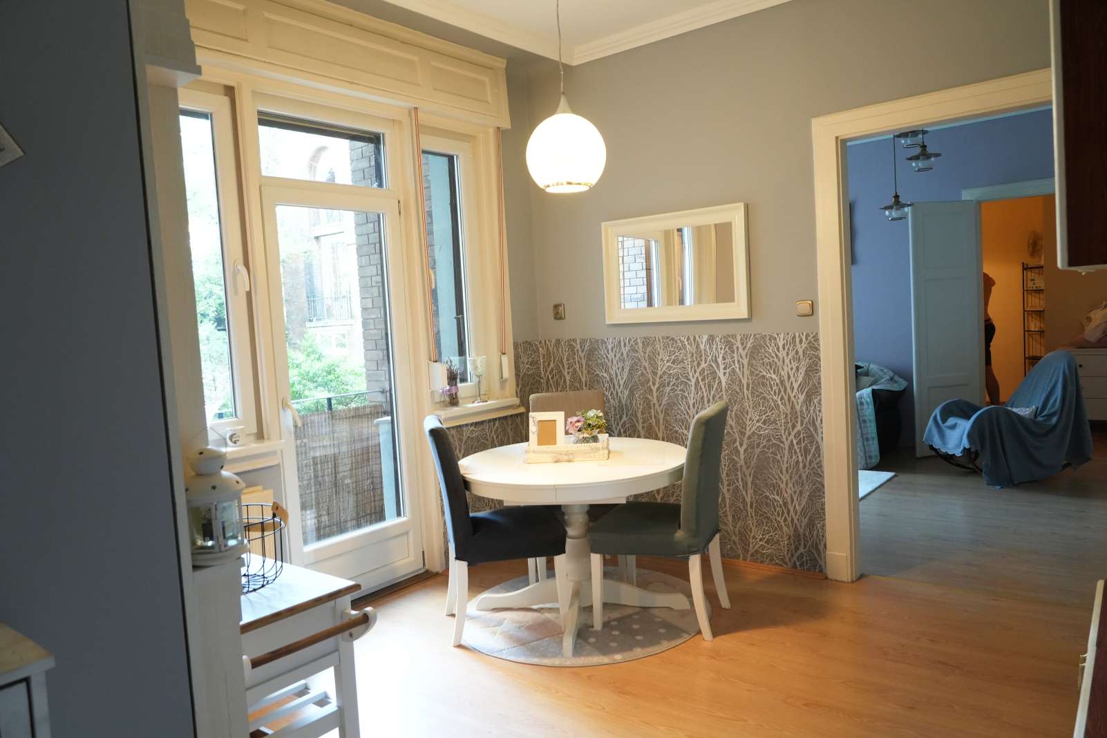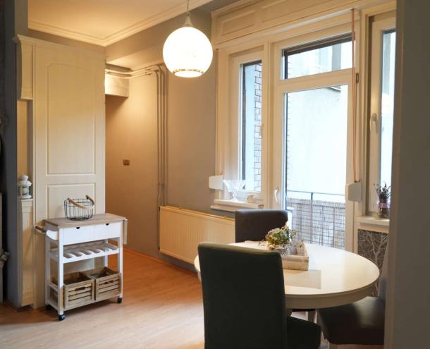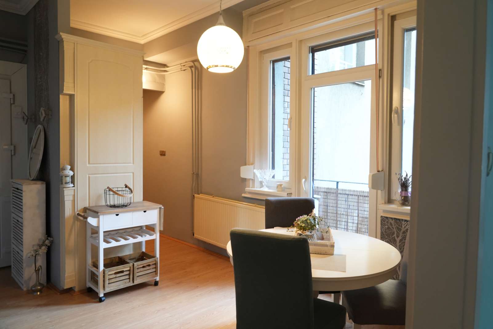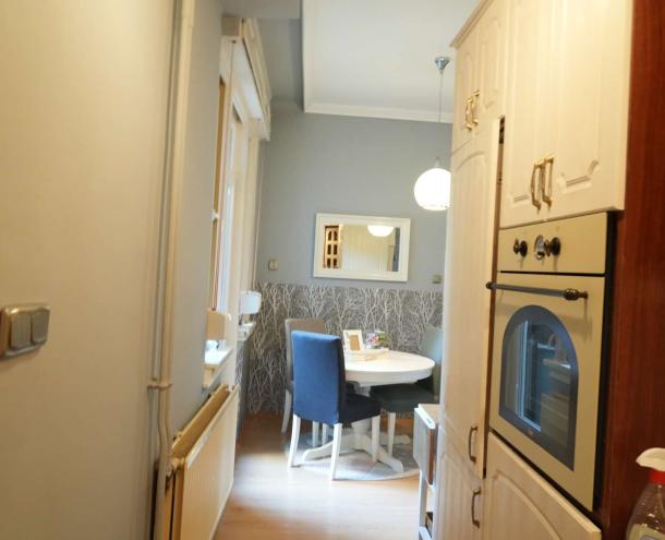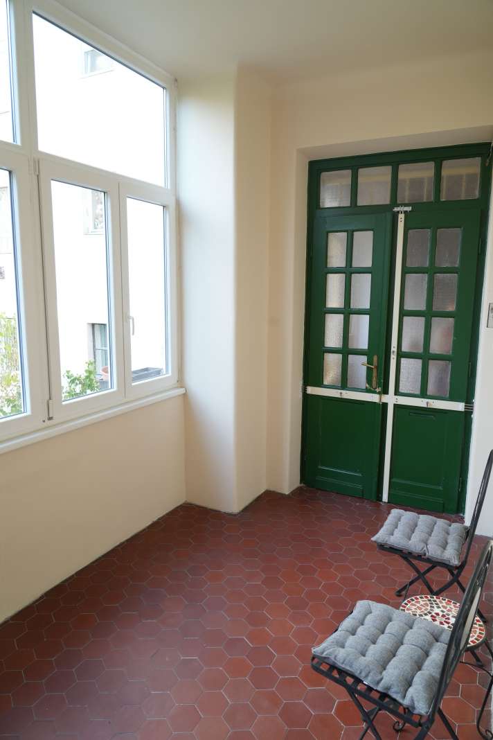 A lépcsőházból egy, a szomszéddal közös, előtérbe és egy közös előszobába léphetünk be. A lakás azonnal költözhető.