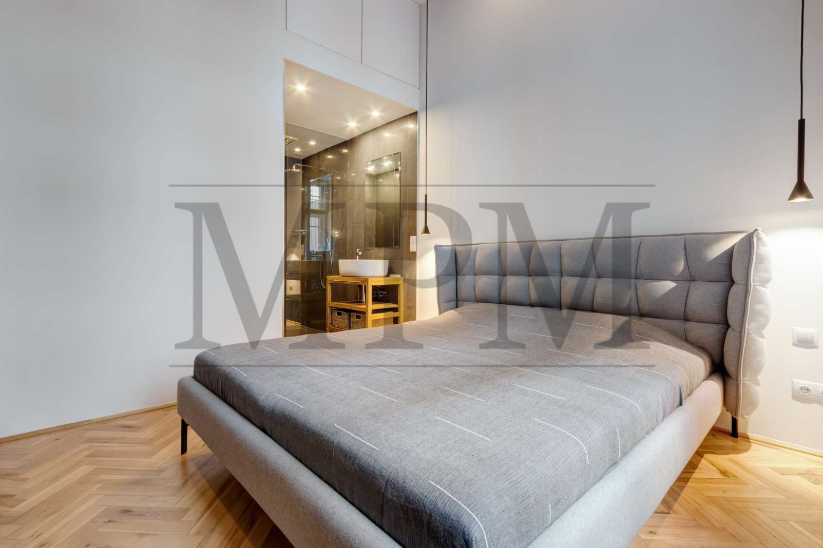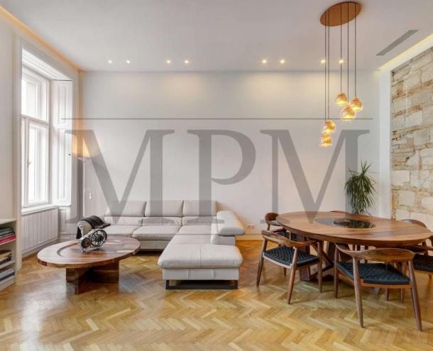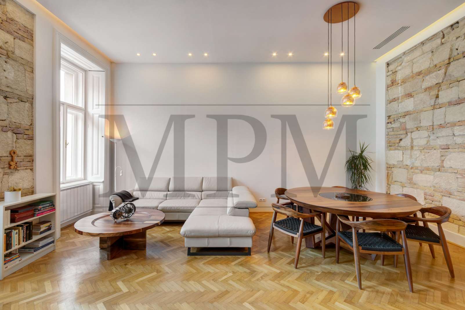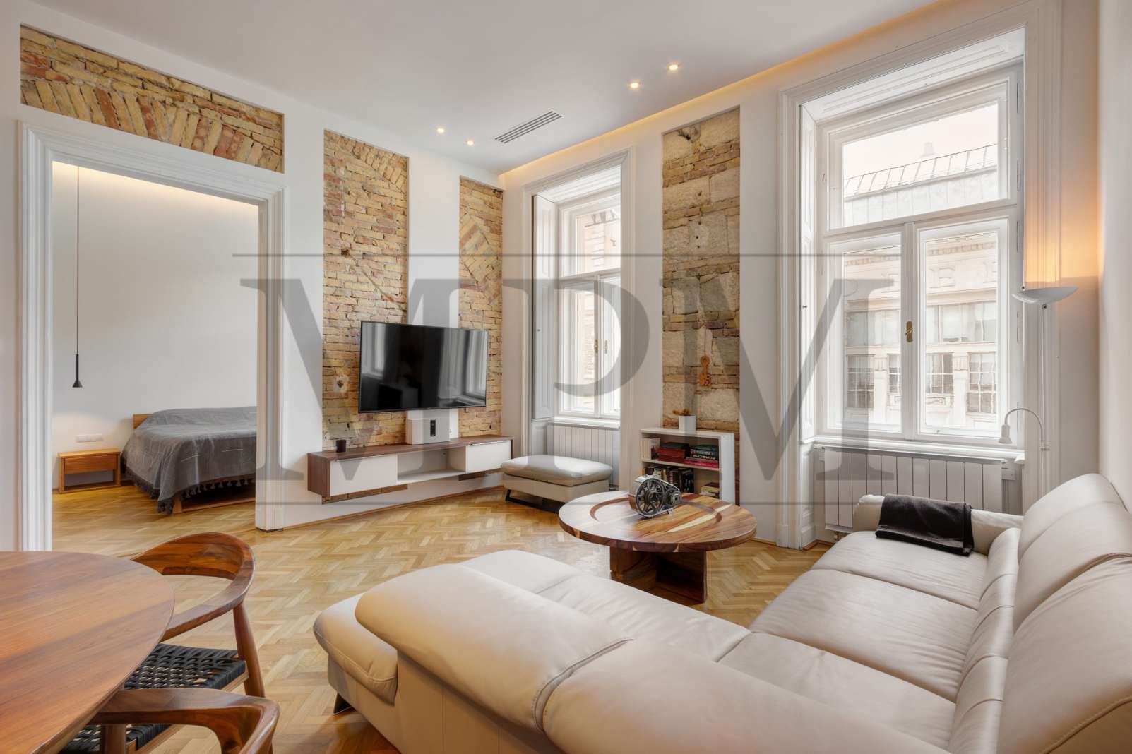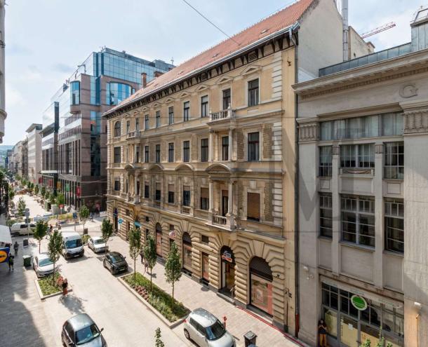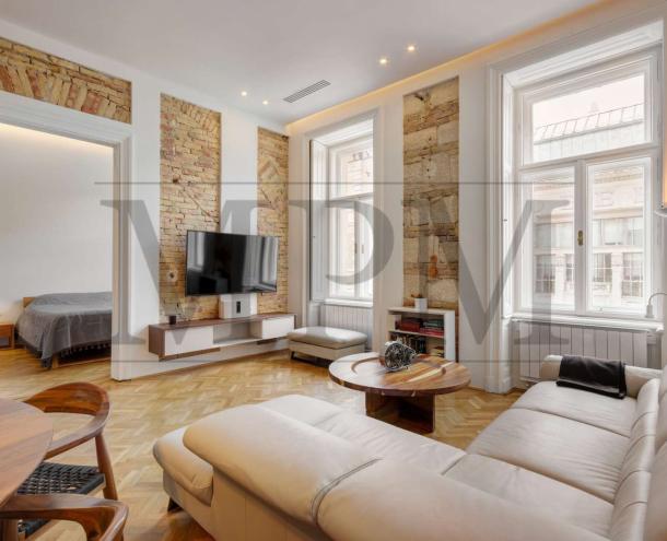 II. emeleti, 85 négyzetméteres, teljeskörűen felújított lakást kínálunk kiadásra, amely mind műszakilag, mind esztétikailag kiváló anyagokból épült. A modern és stílusos bútorokkal berendezett, világos lakás az 1800-as évek közepén épült társasház második emeletén található, és az utcára néz.