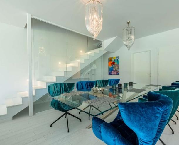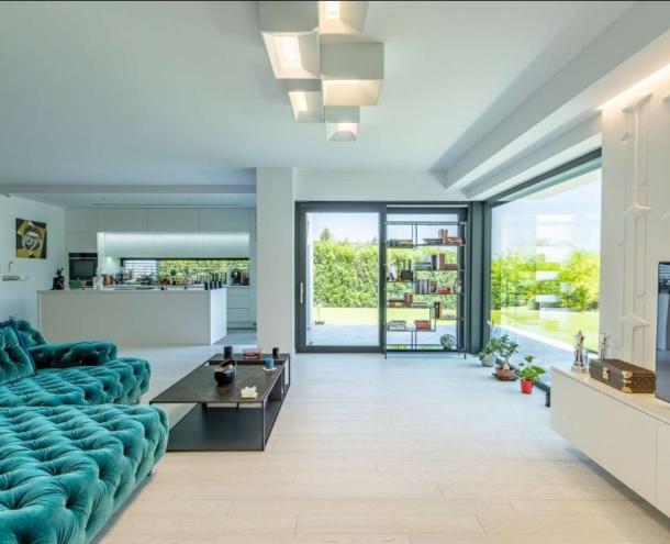 A ház nappali + több szobás kialakítású, nagy üvegfelületeinek és panoráma nyílászáróinak köszönhetően rendkívül világos, modern és elegáns életteret biztosít.