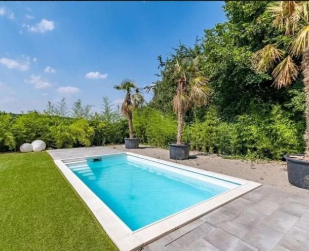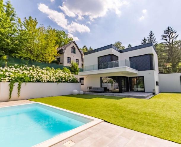 7×3 méteres, fűthető medence, 2 férőhelyes teremgarázs + 2 felszíni beálló, hőszivattyús (Panasonic) mennyezet- és padlófűtés/hűtés, fan-coil rendszer, okos vezérlésű riasztó-, kamera- és tűzjelző rendszer, elektromos kapuk és árnyékolók gondozott, privát kert örökzöld növényzettel.