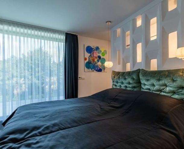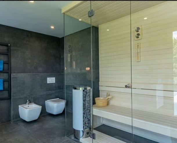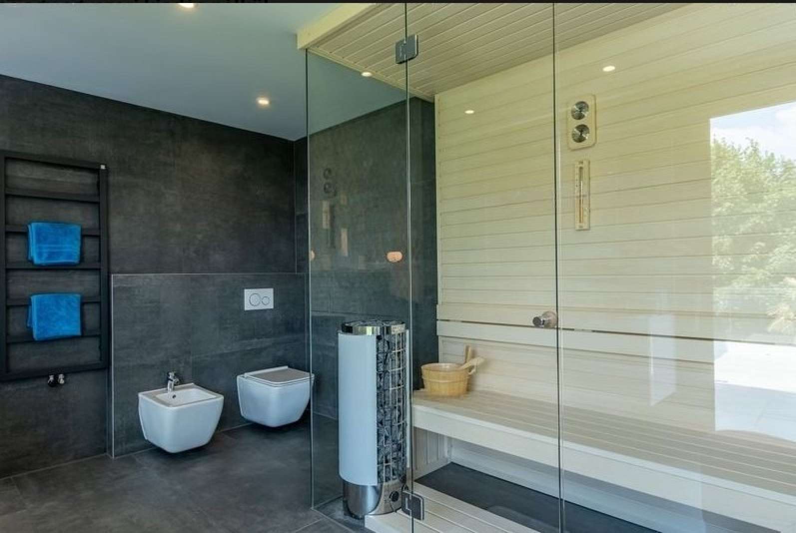 panorámás szauna, 2 további hálószoba beépített gardróbbal, külön fürdőszoba