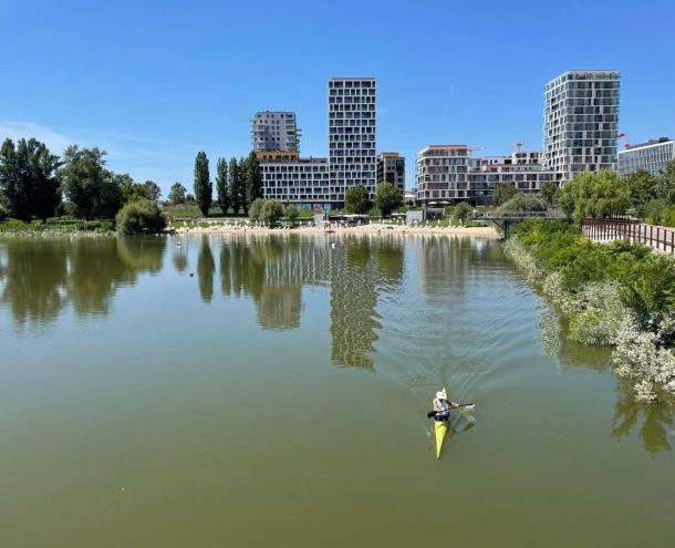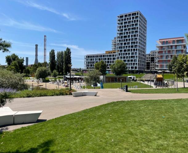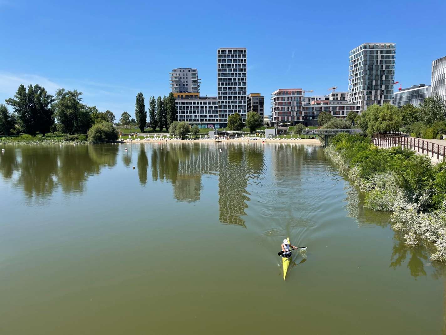 A Budapart BRA épületének 7. (legfelső) emeletén kiadó egy 82 m²-es, 1 nappali 3 hálószobás lakás, 15 m²-es terasszal. A lakás délnyugati fekvésű, részben az öbölre, részben egy parkra néző kilátással.