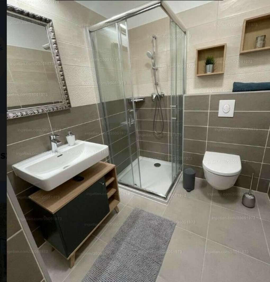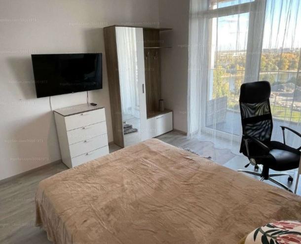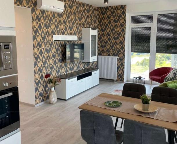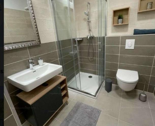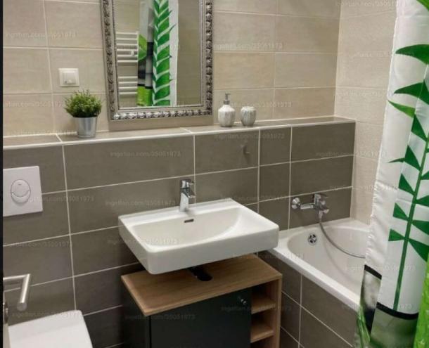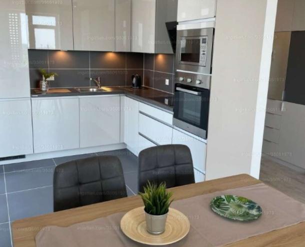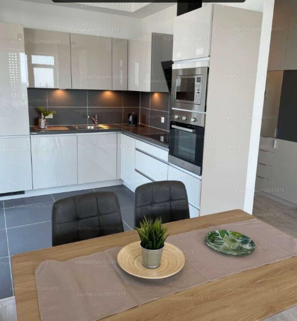 Nappali + 2 szobás, 73 m²-es, 2 fürdős (kádas és zuhanyzós) lakás 40 m²-es terasszal. Teljesen gépesített amerikai konyha, új bútorok, dupla klíma, elektromos redőny, mosógép.