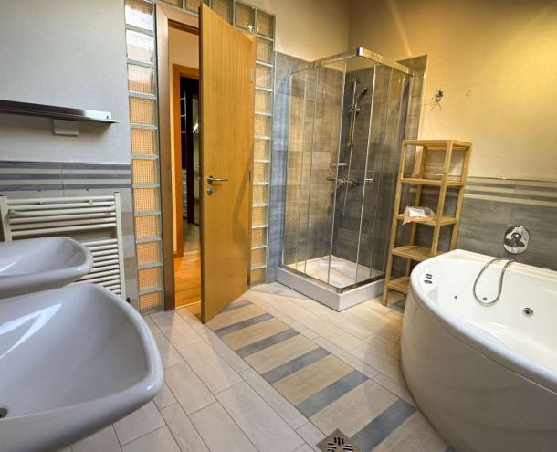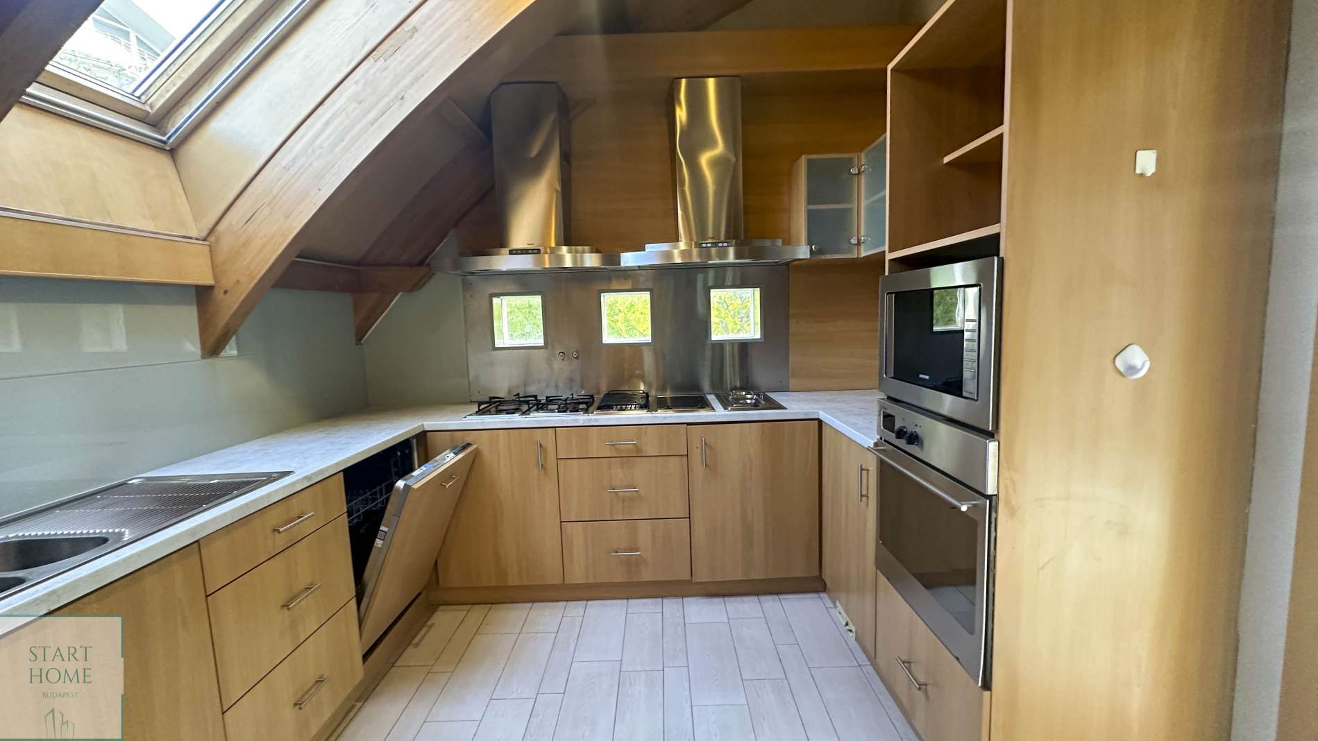 TÁGAS OTTHON CSODÁS PANORÁMVAL. Budán a II. kerületben, a Rózsakert Bevásárlóközpont, közelében egy tágas napfényes, panorámás 2. emeleti 180 nm-es lakás bérbeadó. A lakásban található egy nagy méretű nappali-konyha-étkező, 4 hálószoba, háztartási helyiség, valamint 2 fürdőszoba és egy vendég mosdó, A kiadó ingatlanhoz tartozik egy kétállásos garázs. A fűtés modernizált , hőszivattyús fűtés. Az ingatlan egy 3 lakásos társasház legfelső emeletén helyezkedik el, fantasztikus panorámával a budai hegyekre. Részben bútorozott. Alaprajz!