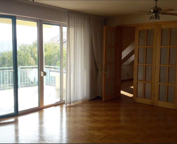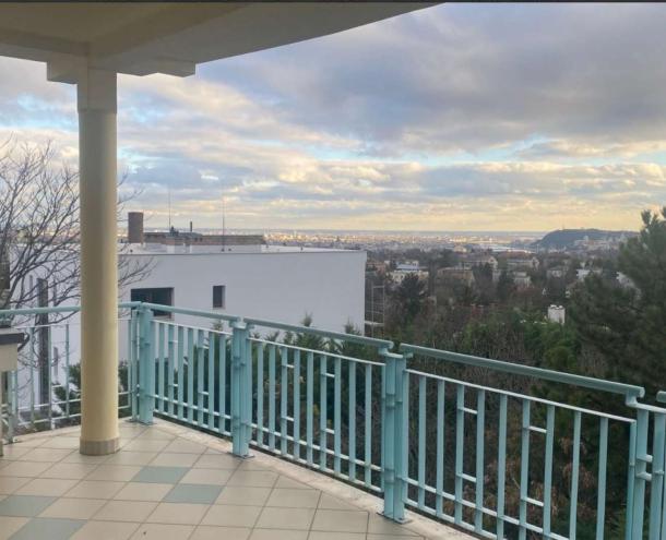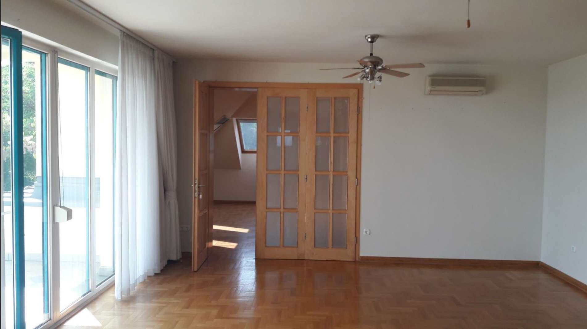 CSENDES UTCÁBAN! 2000-ben épült 3 lakásos társasház II. emeleti (lift), 170 nm-es lakása kiadó, 2196 nm közös kertben. A hegyvidéki, zöldövezeti környezetben található épület középső lakásának helyiségei: 4 hálószoba, nappali, konyha, étkező, előszoba, hall, 1 fürdőszoba és 27 nm terasz. A bútorozatlan lakás légkondicionáló berendezéssel és videós kaputelefonnal felszerelt. Ápolt, gondozott kert, kis játszótérrel. A lakáshoz 2 garázshely.