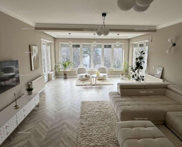 202 m²-es, panorámás, részben bútorozott otthon 15 m²-es terasszal, két zárt garázshellyel és tárolóval, liftes, 3 lakásos társasházban.