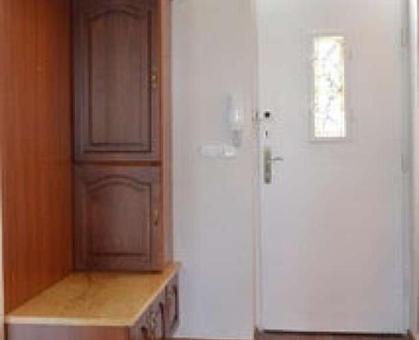 Helyiségek: nagy nappali, 2 hálószoba, teljesen gépesített konyha a hall mellett (kombi hűtő, mosogatógép, kerámialapos tűzhely), zuhanyzós fürdőszoba. A hallból két tárolóhelyiség is nyílik.