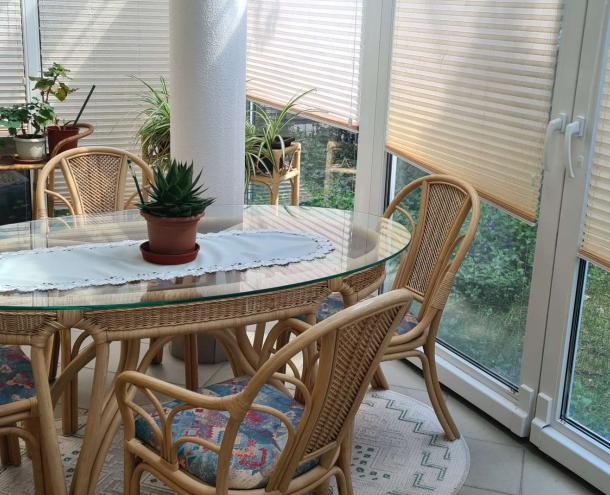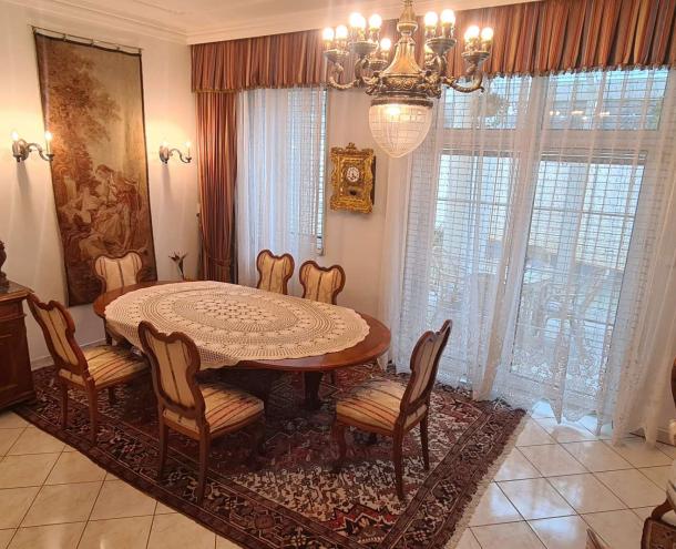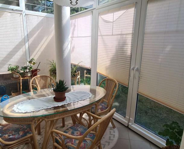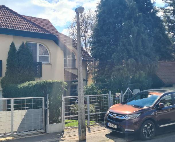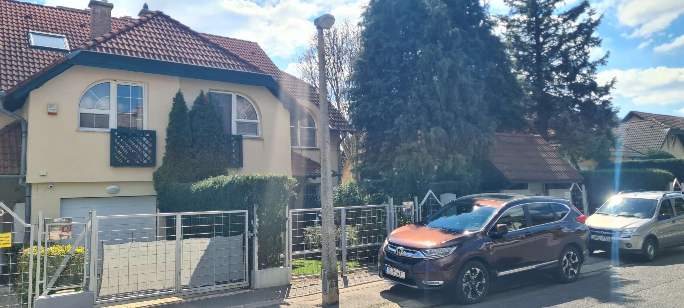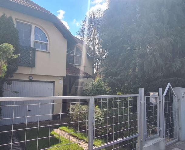 CSATÁRKA LEGKEDVELTEBB UTCÁJÁBAN, KÜLÖN BEJÁRATÚ, KERTES SORHÁZ ELADÓ! A 180m2 összterületű sorház 1995-ben épült, 3 szintes, saját, szeparált 50m2 kertrész tartozik hozzá. A földszinten található a szeparált konyha és az étkező, pár lépcsővel jutunk le a nappaliba, onnan a télikertbe és onnan a kis szeparált kertbe. A konyha szinten van még egy tároló, vendég WC és zuhanyzó. Az emeleten 3 tágas hálószoba, és egy fél szoba, 1 fürdőszoba, külön WC található, A tetőtérben egylégterű szoba és zuhanyzó, egy gardrób helyiség és egy kis tároló van kialakítva. A házban riasztó és parabola antenna van. A lakás nagyon biztonságos a földszinten biztonsági redőny véd. A lakás klimatizált. A fűtése egyedi cirkó fűtés. A házhoz 1 garázs és 1 gépkocsi beálló tartozik hozzá (garázsból közvetlenül a lakásba lehet jutni.) A ház napos, D-i fekvésű. A lakás jelenleg a képeken látható bútorokkal van berendezve, de bérelhető üresen is. A kertben saját öntöző rendszert alakítottak ki, a tavaszi és az őszi kertkarbantartást a bérleti díj tartalmazza. A környék infrastruktúrája kiváló, sétatávolságra a busz, a bevásárlóközpont, élelmiszerbolt, játszótér. 2026. májustól költözhető.