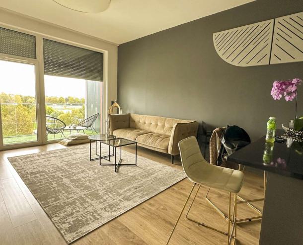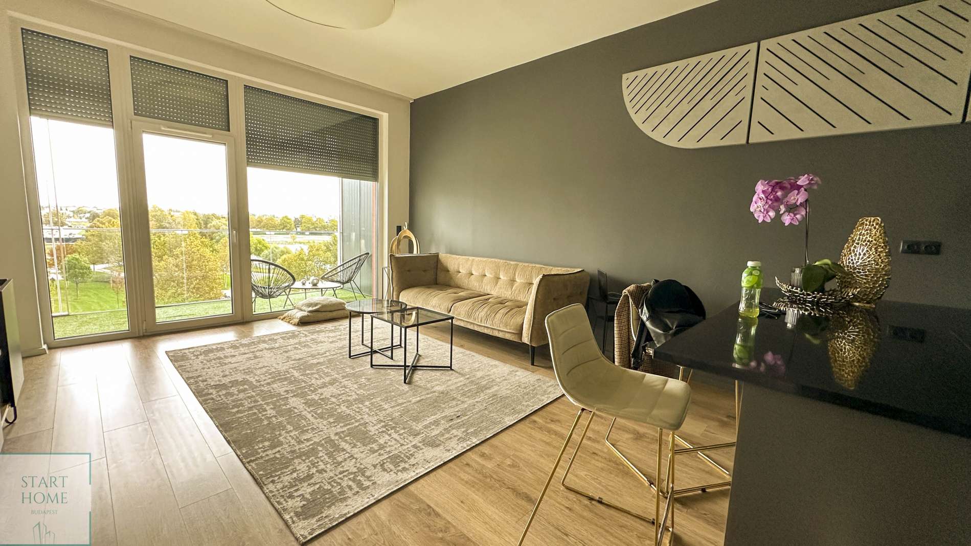 IIGÉNYESEN BERENDEZETT LUXUS LAKÁS, CSODÁLATOS DUNAI PANORÁMÁVAL kiadó a Budapart lakóparkban. A lakás a 3. emeleten található liftes épületben. Nagy nappali és 2 hálószobás, 1 fürdőszobával és 2 WC vel. 20nm es panorámás terasszal.24 órás portaszolgálattal,