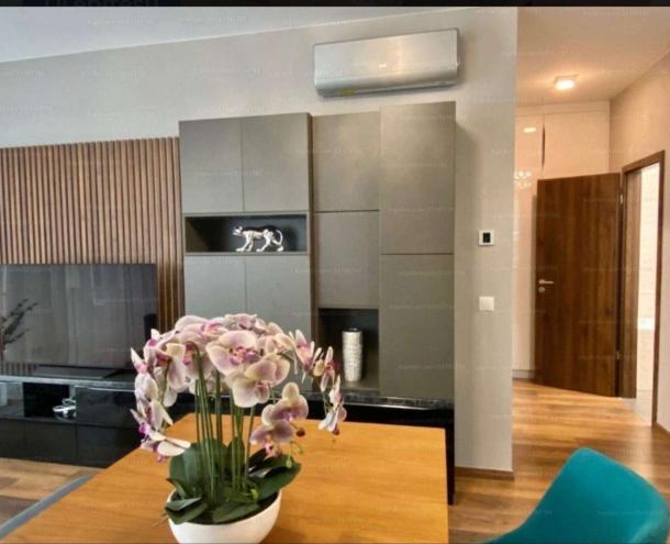 Páratlan panoráma a Duna partra és a budai hegyekre! 2021.-ben épült társasházban kiadó egy 75 m2-es lakás, 1 nappali + 2 szobás, 2 fürdőszobás (zuhanyzós és kádas) , 12 m2 terasszal, 3. emeleten. Amerikai konyhás nappali étkezővel, teljesen gépesített konyha (főzőlap, sütő, hűtő, fagyasztó, elszívó, mikró, mosogatógép), klíma, új bútorok, elektromos redőny. A teremgarázsban beállóhely – elektromos töltési lehetőséggel. Közüzemi díj egyedi mérőórákkal fogyasztás szerint. Dohányzás: nem megengedett. Kisállat: nem megengedett.