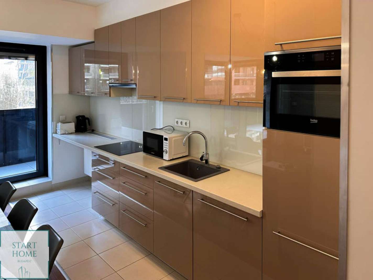 Kiadó a Corvin sétányon egy 2022.-ben épült társasház, 75 m²-es, első emeleti (lift), teljesen bútorozott, étkezős konyha, nappali + 2 hálószobás lakás, 22 m²-es terasszal.