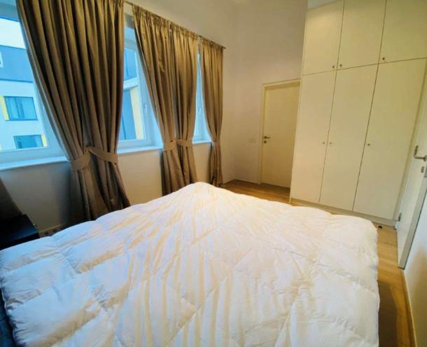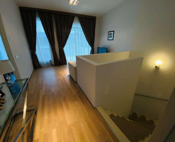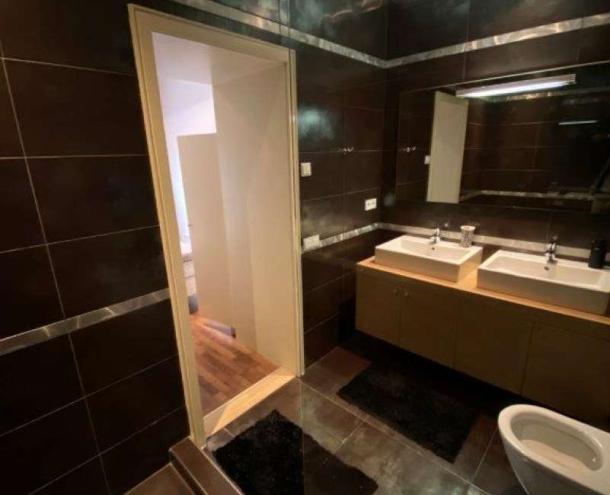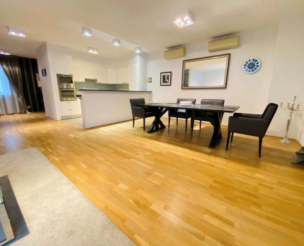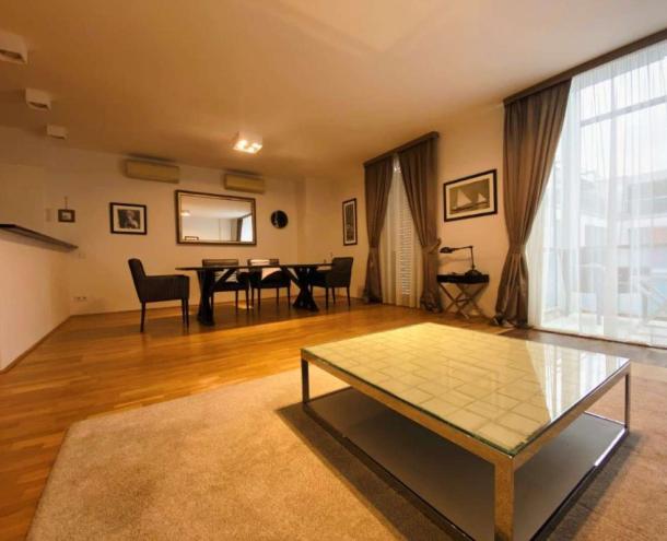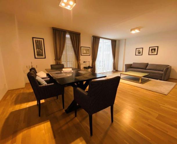 A Belváros szívében kiadó egy V. em-i (lift) kétszintes luxuslakás a gyönyörűen felújított DOROTTYA Palotában. A lakás mennyezetfűtéses, légkondícionált, modern, magas színvonalú bútorokkal berendezve bérelhető. A 126 nm-en található egy amerikai konyhás nappali, vendég WC, háztartási helyiség és gardrób a földszinten, valamint 2 háló, 2 fürdő, terasz és 2. nappali az emeleten. A lakáshoz parkolóhely bérelhető (250 EUR/hó) a kamerákkal őrzött mélygarázsban. A házban 24 órás portaszolgálat és konditerem található. Közös ktg: 400 EUR/hó. Alaprajz!