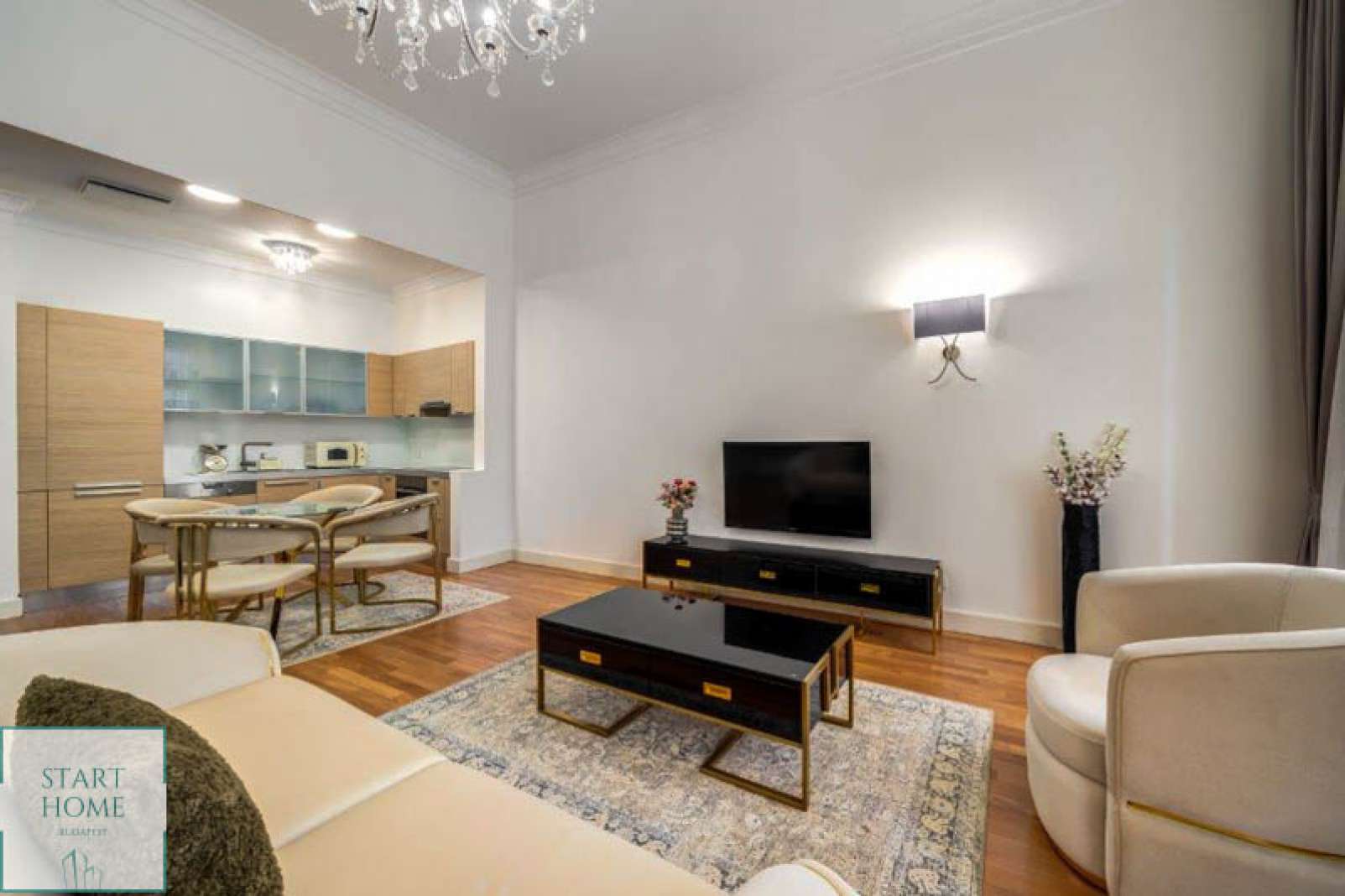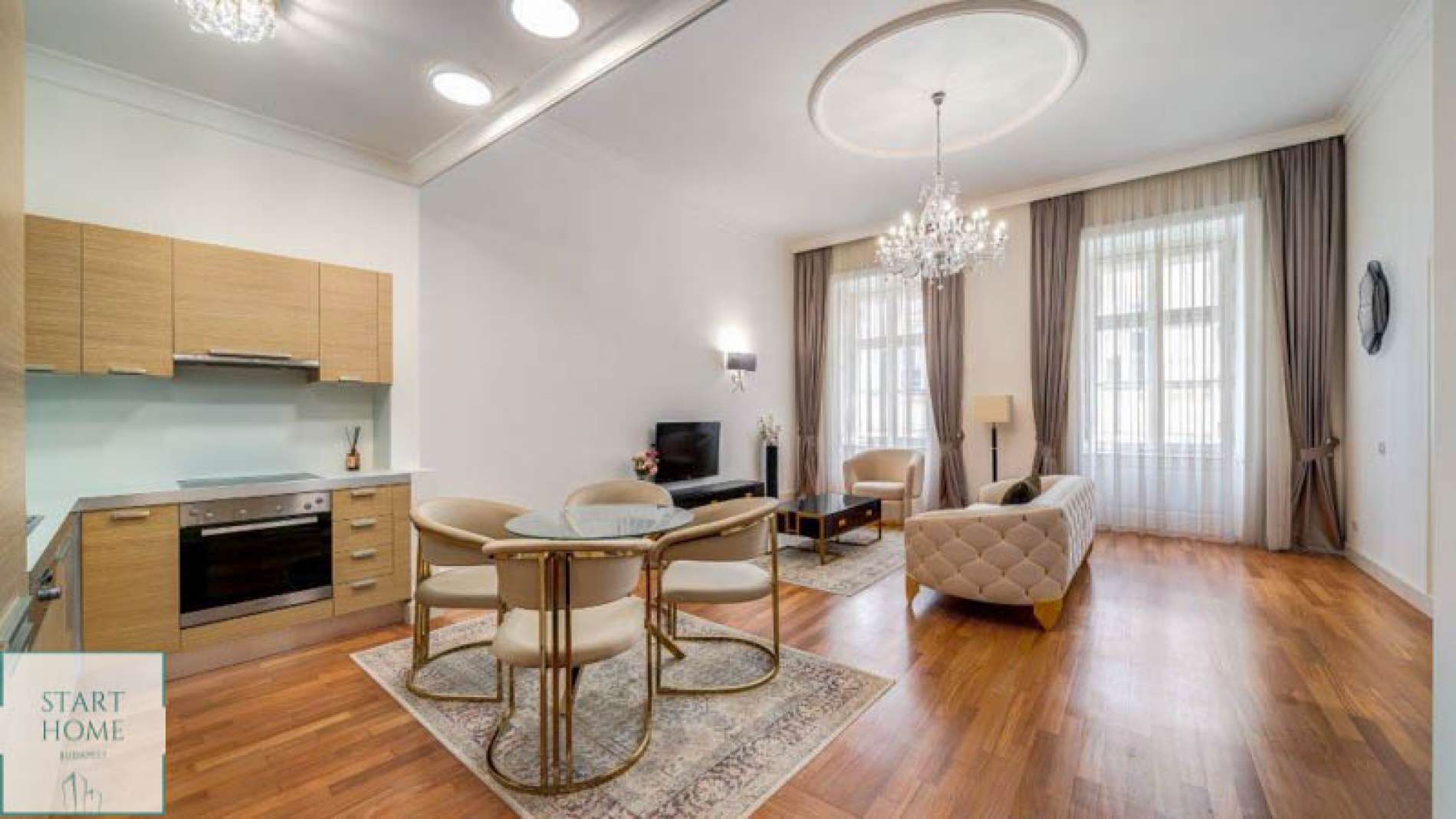 A BELVÁROS SZÍVÉBEN A DOROTTYA PALOTÁBAN KIADÓ LAKÁS! kiadó egy II. em-i (lift) luxuslakás a gyönyörűen felújított DOROTTYA Palotában. A lakás mennyezetfűtéses, légkondicionált, modern, magas színvonalú bútorokkal berendezve bérelhető. A 69 nm-en található egy nappali, valamint 1 hálószoba 1 fürdőszobával és egy amerikai konyha. A lakáshoz parkolóhely bérelhető (250 EUR/hó) a kamerákkal őrzött mélygarázsban. A házban 24 órás portaszolgálat és konditerem. Háziállat nem mehet!