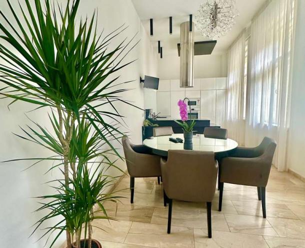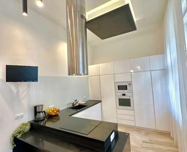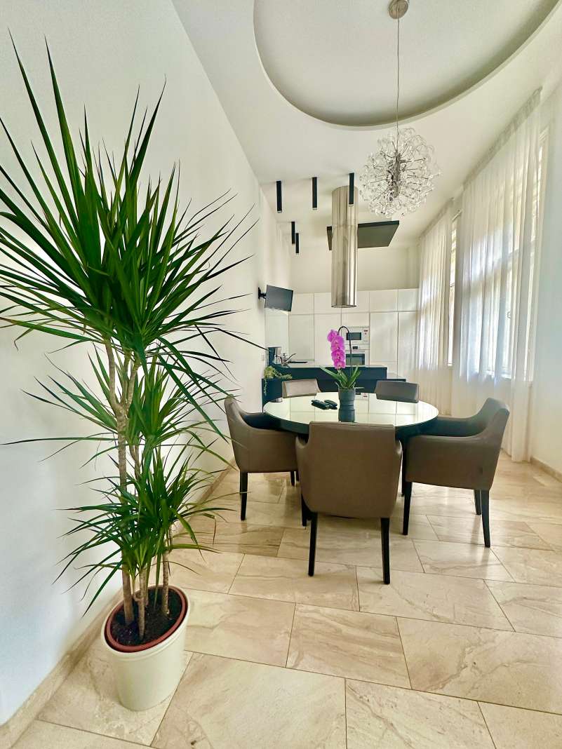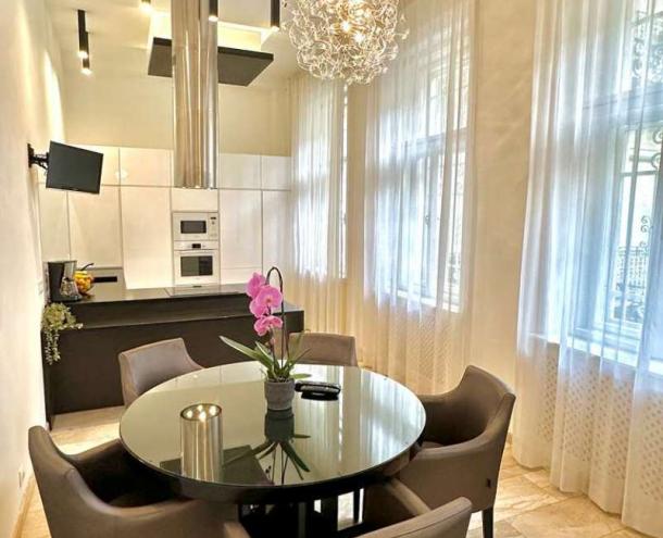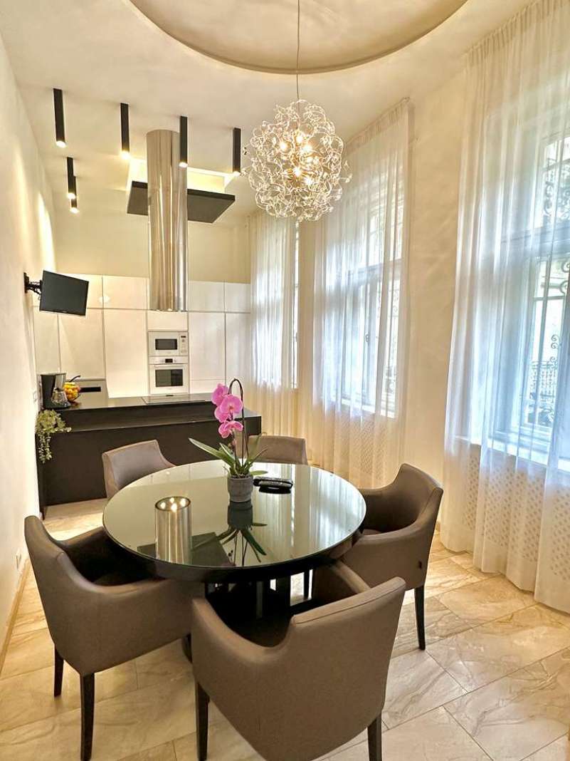 PARLAMENTHEZ KÖZEL, ELEGÁNS LAKÁS! III. em-i (lift), 132 nm-es, világos, csendes lakás kiadó. Helyiségei: nappali, 2 nagy hálószoba, nyitott konyha étkezővel a hallban, 2 fürdőszoba, külön WC, háztart. helyiség. Extrák: riasztó, légkondi, olasz bútorok, hajlított HD TV, high tech hangrendszer minden szobában. A közös ktg.: 30.219 Ft/hó. Kis testű házi állat mehet 3 havi kaució mellett.