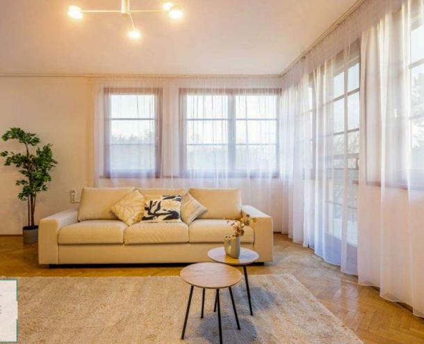 2000-ben épült lakópark 110 nm-es, I. em-i, 110 nm-es lakása kiadó 15000 nm közös kertben. Helyiségei: nappali, 3 háló, konyha, 1 fürdőszoba, 1 zuhanyozó, terasz. Bútor nélkül bérelhető, 2 autónak garázs, valamint tároló helyiség tartozik hozzá. Közös ktg.: 140 EURO + ÁFA/hó. A lakóparkban portaszolgálat üzemel. Bérleti díj: 1500 EURO + ÁFA. Kistestű kutyák tartása engedélyezett