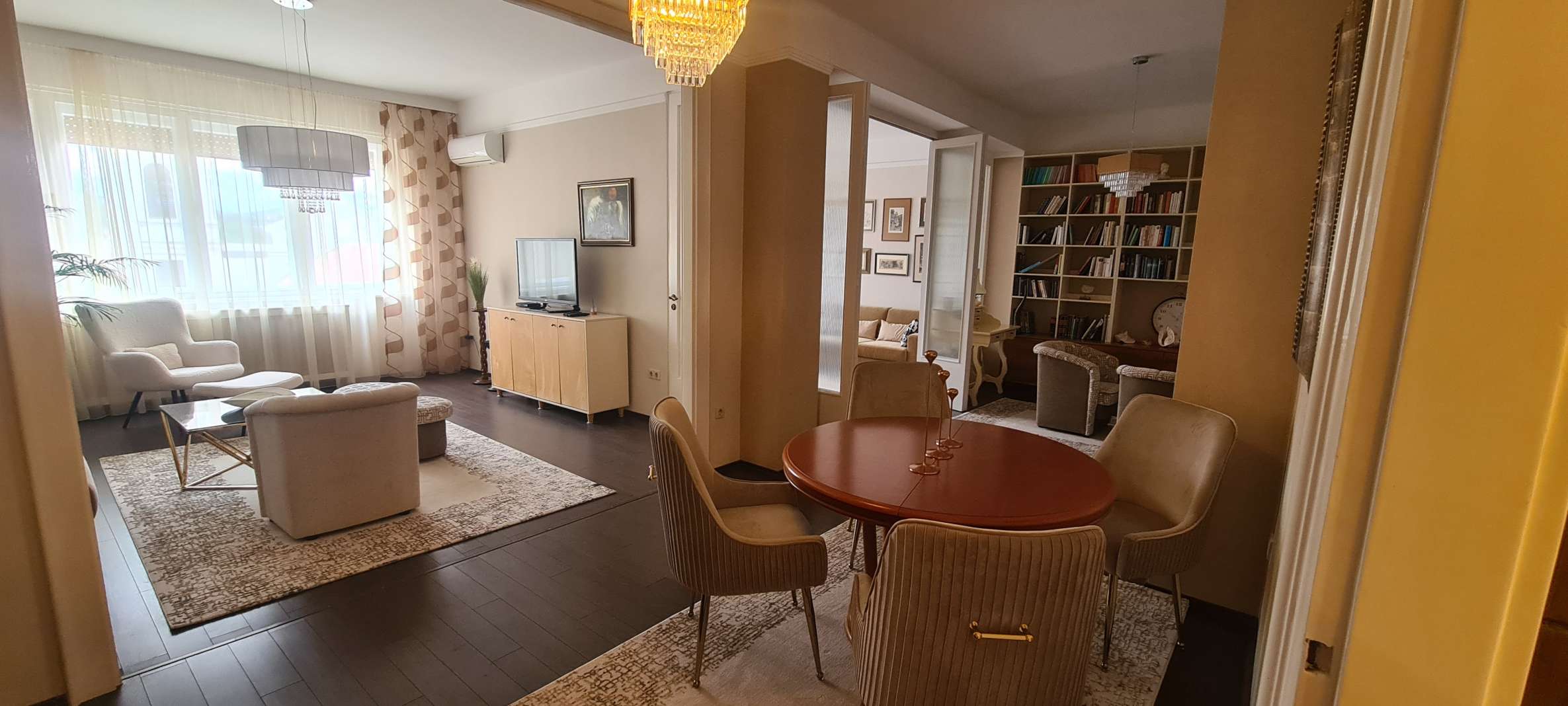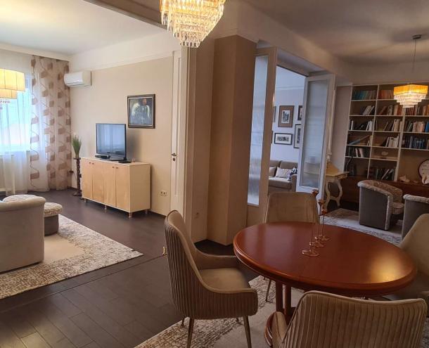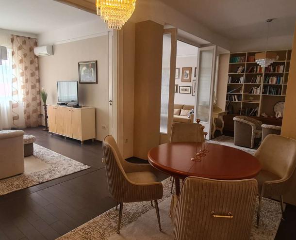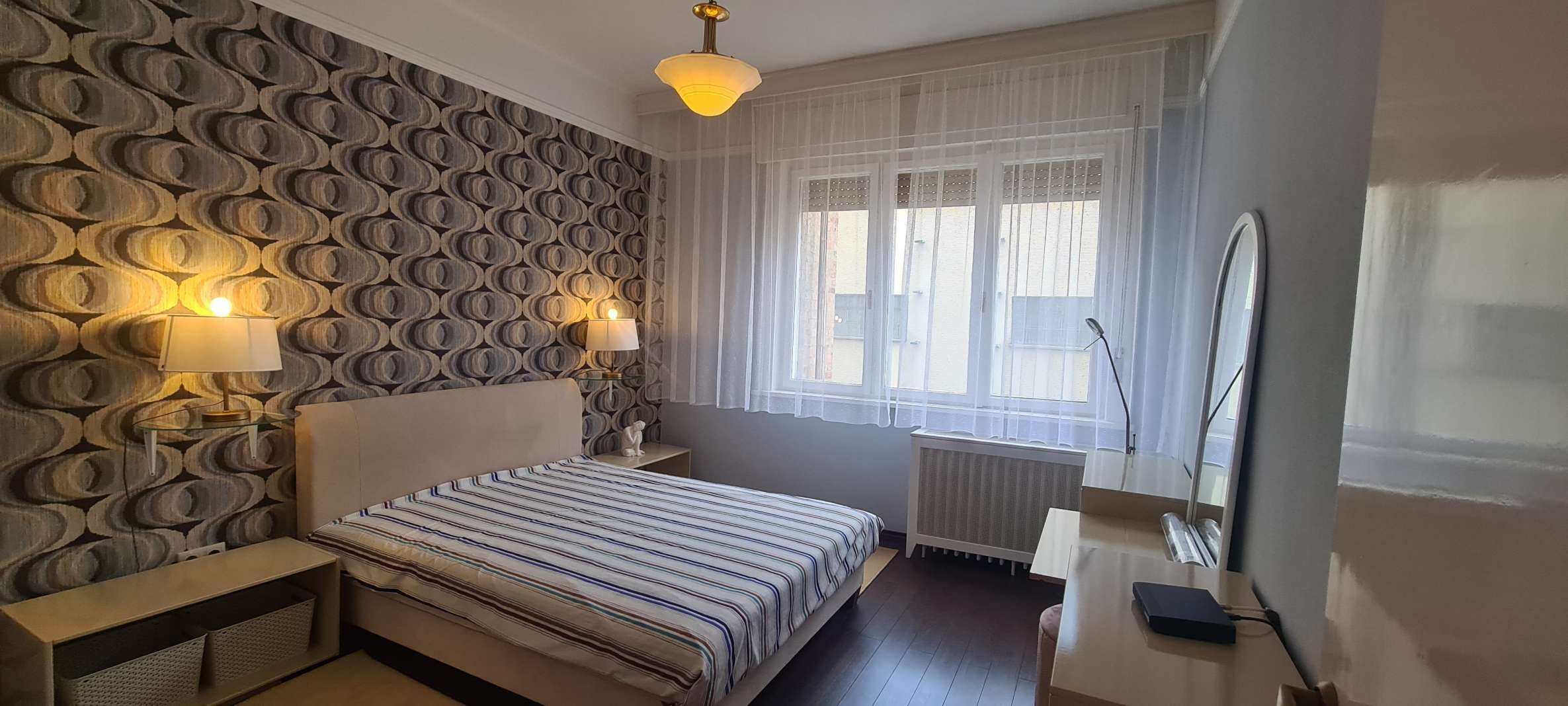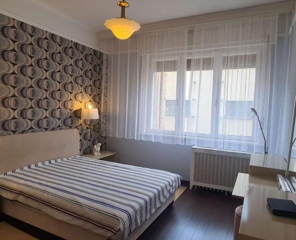 BELVÁROS SZÍVÉBEN DUNAI PANORÁMÁS BÚTOROZOTT LAKÁS KIADÓ! 1939-ben épült 7 emeletes, liftes társasház 6. emeletén kiadó ez a 115 nm-es erkélyes (5 nm), Dunára panorámás, bútorozott lakás. A lakásban kellemes tágas tereket találunk. A nappali és az étkező valamint egy dolgozó rész alkot egy egységet. Innen nyílik egy erkélyes, dunai panorámás hálószoba és egy belső udvarra néző szülői hálószoba, egy kis gardrób szobával. A tágas fürdőszobában kád és dupla mosdó található. A zárt konyha teljesen felszerelt, gépesített, innen nyílik egy kis méretű háló vagy dolgozó szoba egy pici zuhannyal. A légkondicionált lakás a képeken látható bútorokkal berendezett, minden ablakon redőny segíti a sötétítést. A közös költség 51.500 Ft mely tartalmazza a a fűtés átalányt és a korlátlan vízhasználatot is. Ezen kívül a villany és az internet fizetetndő. Parkolóhely a közeli parkolóházban lehetséges. A lakás azonnal költözhető!