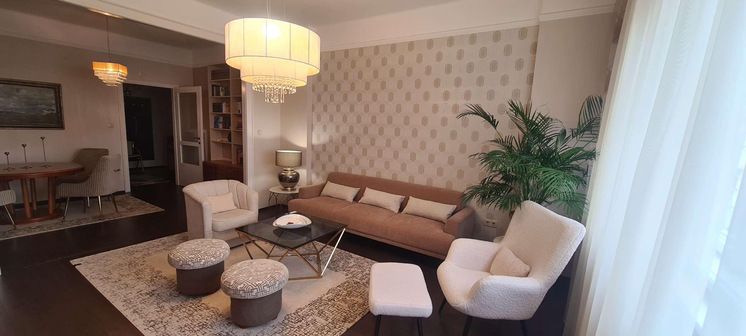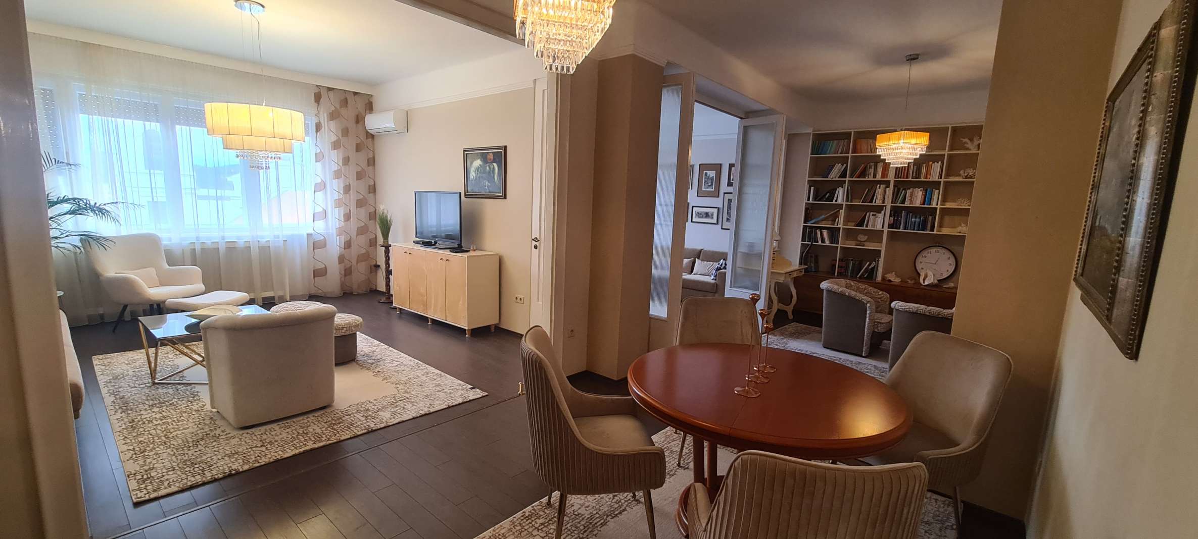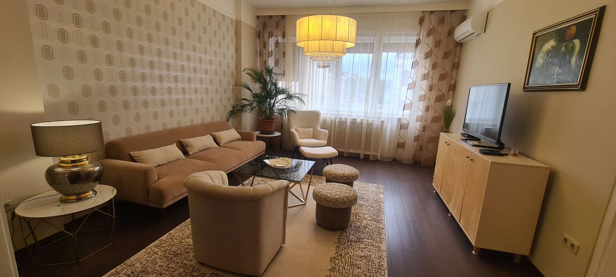 BELVÁROS SZÍVÉBEN DUNAI PANORÁMÁS BÚTOROZOTT LAKÁS KIADÓ! 1939-ben épült 7 emeletes, liftes társasház 6. emeletén kiadó ez a 115 nm-es erkélyes (5 nm), Dunára panorámás, bútorozott lakás. A lakásban kellemes tágas tereket találunk. A nappali és az étkező valamint egy dolgozó rész alkot egy egységet. Innen nyílik egy erkélyes, dunai panorámás hálószoba és egy belső udvarra néző szülői hálószoba, egy kis gardrób szobával. A tágas fürdőszobában kád és dupla mosdó található. A zárt konyha teljesen felszerelt, gépesített, innen nyílik egy kis méretű háló vagy dolgozó szoba egy pici zuhannyal. A légkondicionált lakás a képeken látható bútorokkal berendezett, minden ablakon redőny segíti a sötétítést. A közös költség 51.500 Ft mely tartalmazza a a fűtés átalányt és a korlátlan vízhasználatot is. Ezen kívül a villany és az internet fizetetndő. Parkolóhely a közeli parkolóházban lehetséges. A lakás azonnal költözhető!