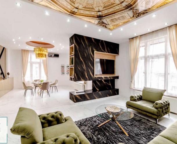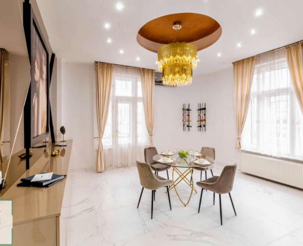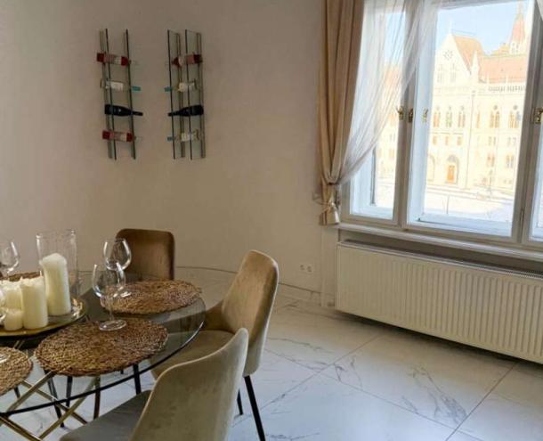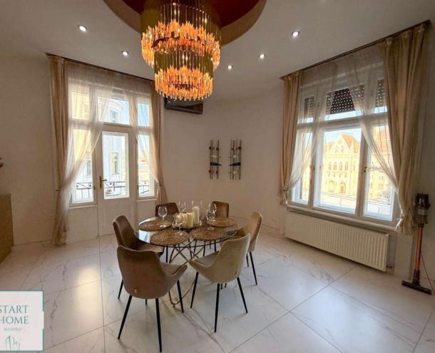 Az V. kerület, Lipótváros egyik liftes házának 3. emeletén található ez a 110 m²-es, világos, egyedi hangulatú lakás. Teljeskörűen felújított, ízlésesen berendezett, azonnal költözhető.