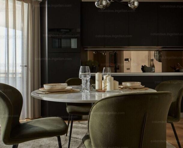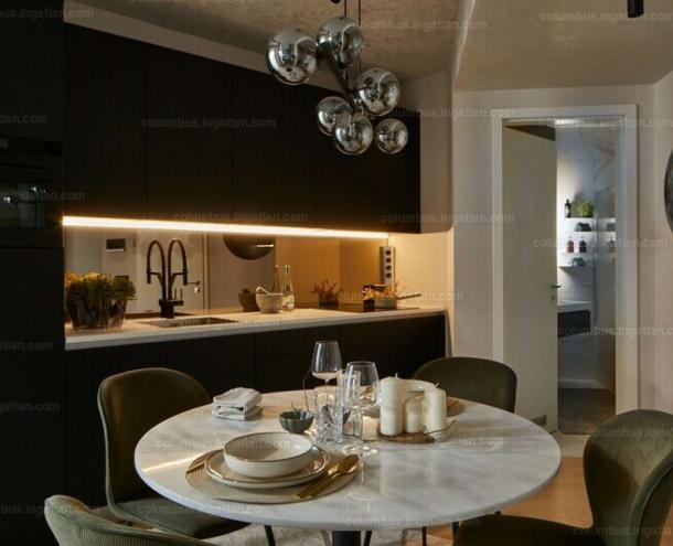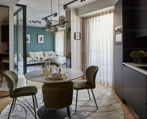 Az otthonban egy amerikai konyhás nappali étkezővel, egy tágas előszoba, egy hálószoba, egy zuhanyzós fürdőszoba és egy külön WC található. A lakás kiváló minőségű, egyedi készítésű bútorokkal van berendezve.