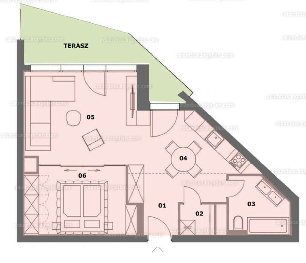A lakáshoz egy tágas, 12,9 négyzetméteres terasz is tartozik.