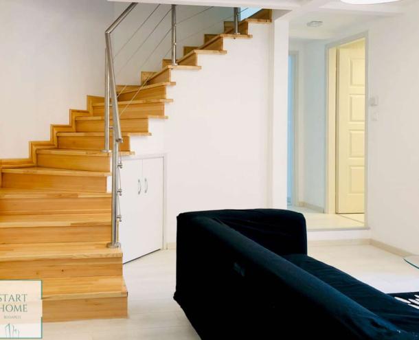 HŰVÖSVÖLGYBEN lakás céljára kiadó kétszintes, 110 nm-es önálló ház. Alsó szint nappali, konyha, 2 tároló, zuhanyzós fürdőszoba, WC. Tetőtér három hálószoba, gardrób, kádas fürdőszoba, erkély.
