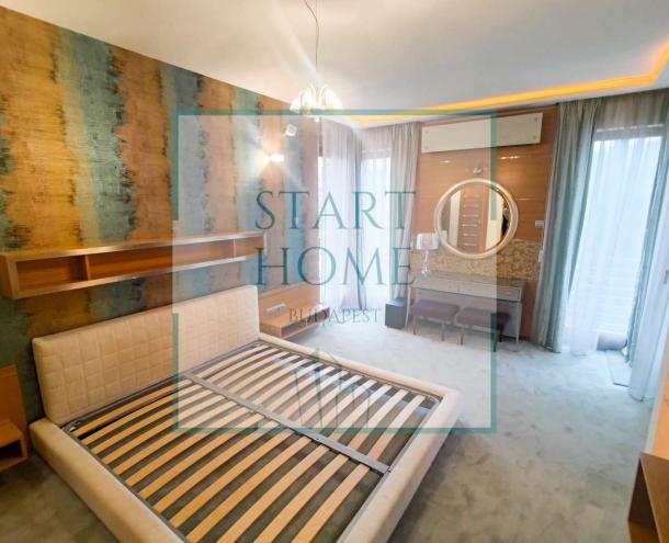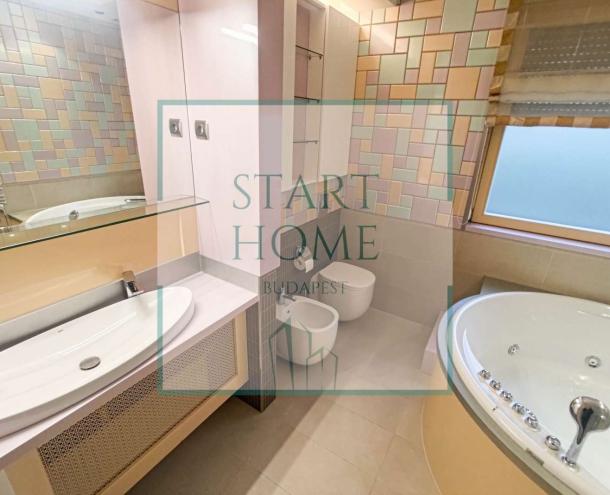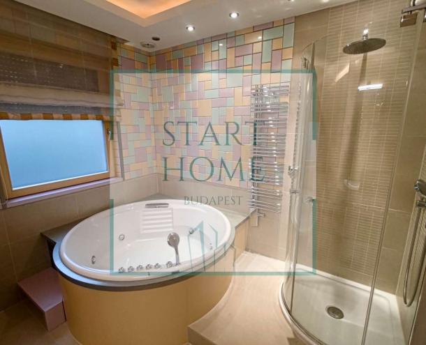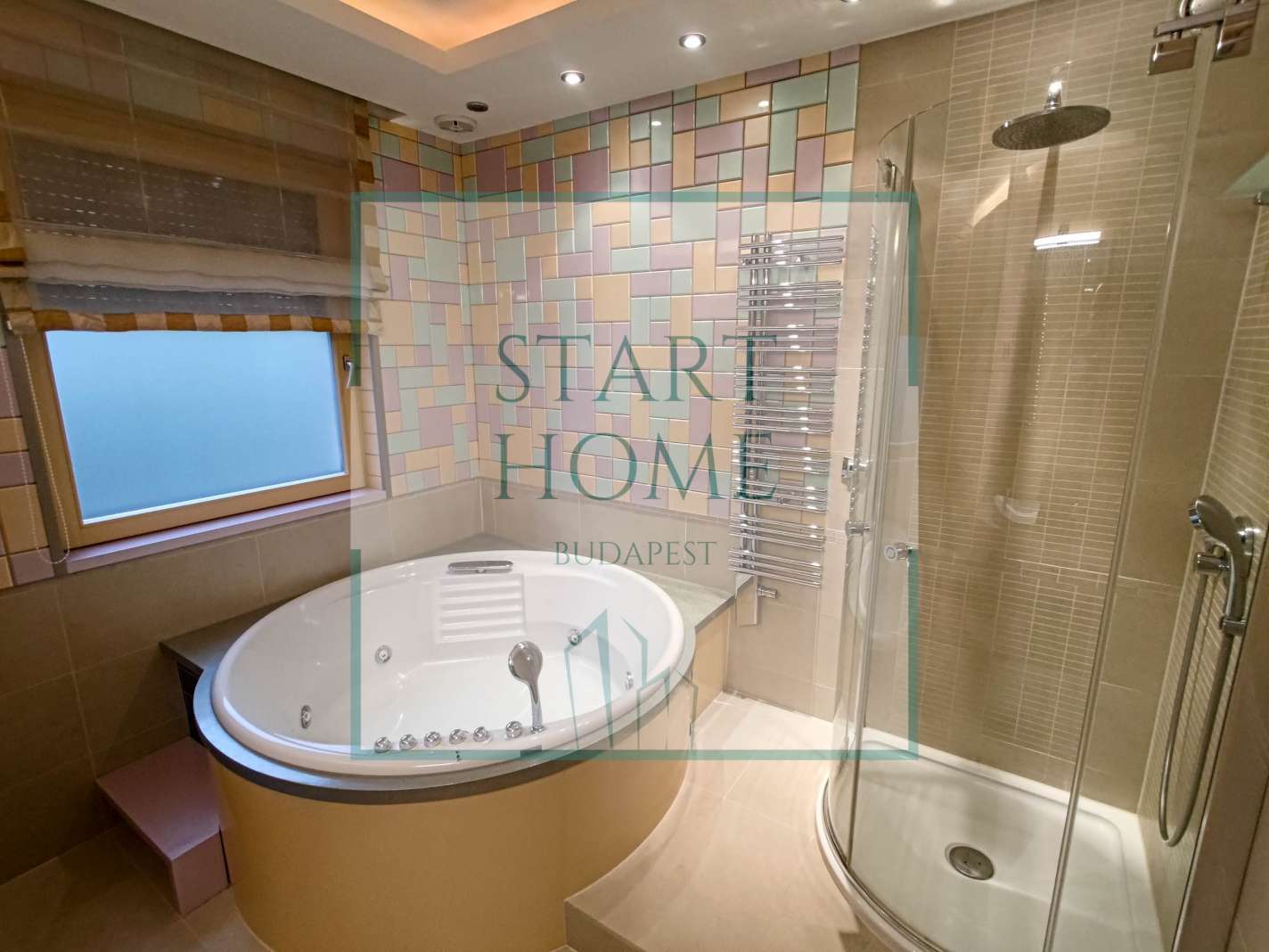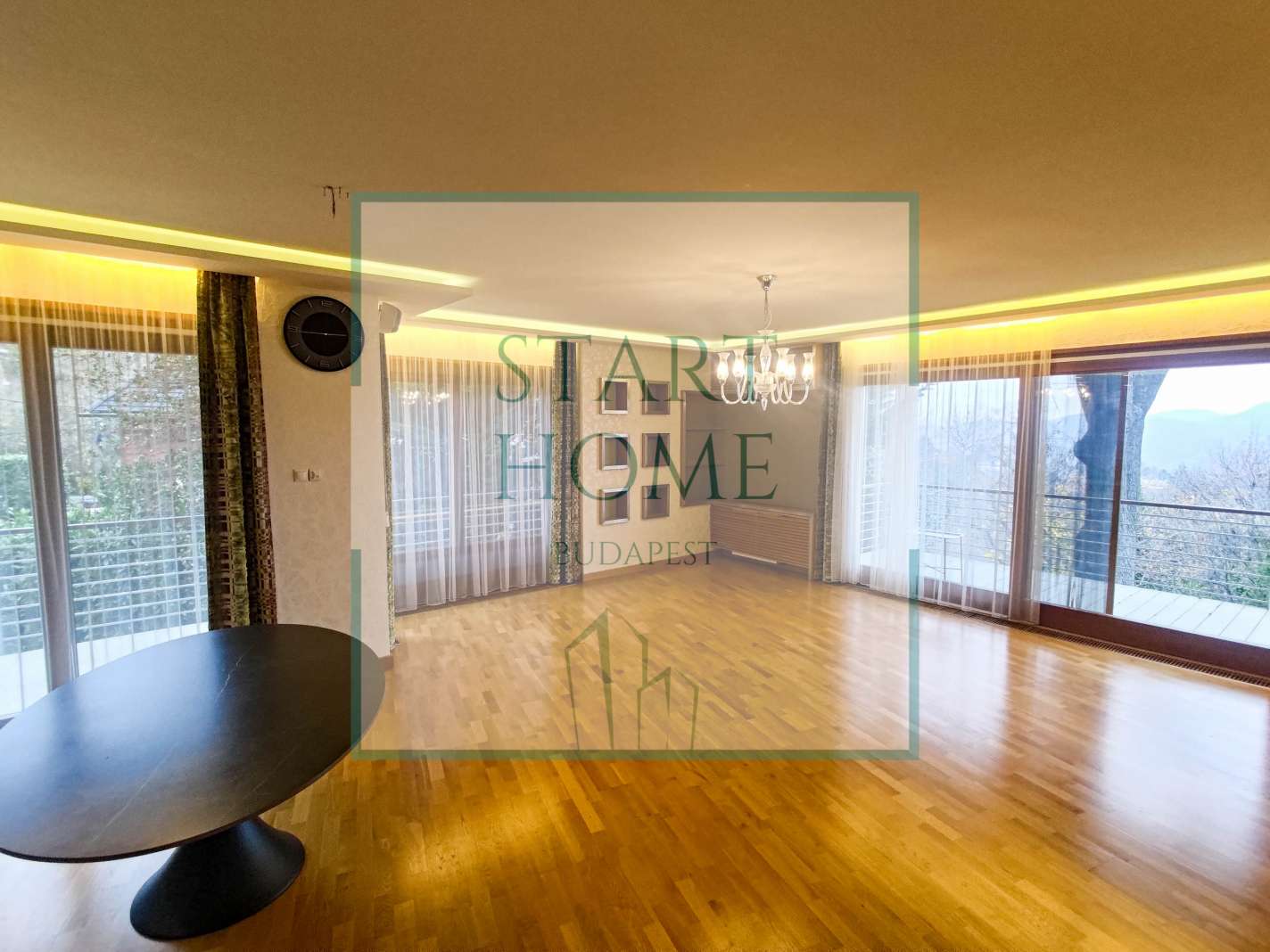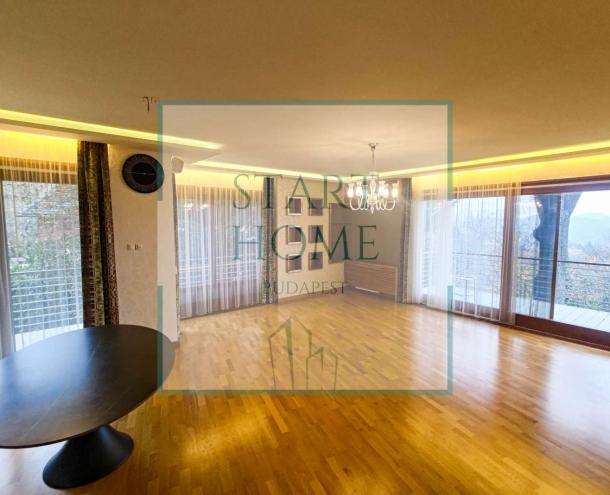 Gyönyörű, hegyvidéki részen, hangulatos zsákutcában kiadó egy újszerű, 3 lakásos társasházban egy I. emeleti, 175 nm-es lakás. A 70 nm-es nappaliban egyedi akvárium, kandalló és egész falat beborító panorámaablakok találhatók, ahonnan nagyon szép városi panoráma tárul a szemünk elé a hatalmas teraszról. Ide kapcsolódik a minden géppel felszerelt nyitott konyha. 3 tágas hálószobához 2 luxus fürdőszoba, egy tágas gardróbszoba és intim terasz tartozik. Extrák: magas minőségű burkolatok (trópusi fa, nemes falburkolatok), intelligens fény- és hangtechnika, jacuzzi, hidromasszázs zuhanyok, 3 autónak garázs. A lakás bútor nélkül bérelhető. Fotó!