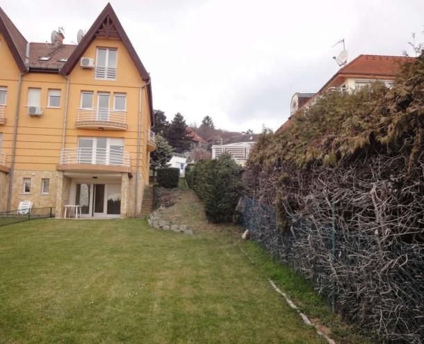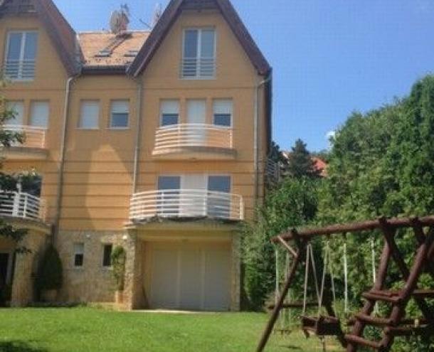 GYÖNYÖRŰ PANORÁMA! 240 nm-es, 4 szintes, panorámás ikerház kiadó. Szintenként 60 nm, bejárati szint: előszoba vendég WC-vel, nappali kertre néző terasszal; -1 szint (kertszint): kertkapcsolatos, étkezős konyha, kamra, mosókonyha, zuhanyzós fürdőszoba; 1. emelet: 3 hálószoba (egyik saját kádas fürdőszobával, egyik panorámás erkéllyel); 2. emelet: nappali teakonyhával, 1 szoba. Egyedi gáz-fűtés, külső-belső riasztó, minden ablakon redőny található, 1 garázs beálló, 1 felszíni, kapuval védett beálló hely. A ház bútor nélkül bérelhető. Háziállat mehet!