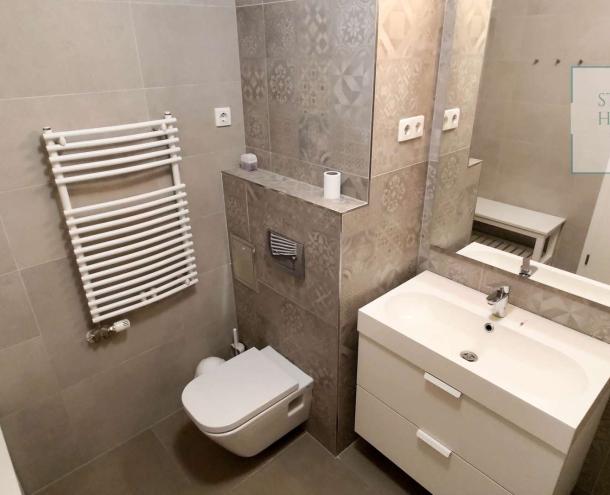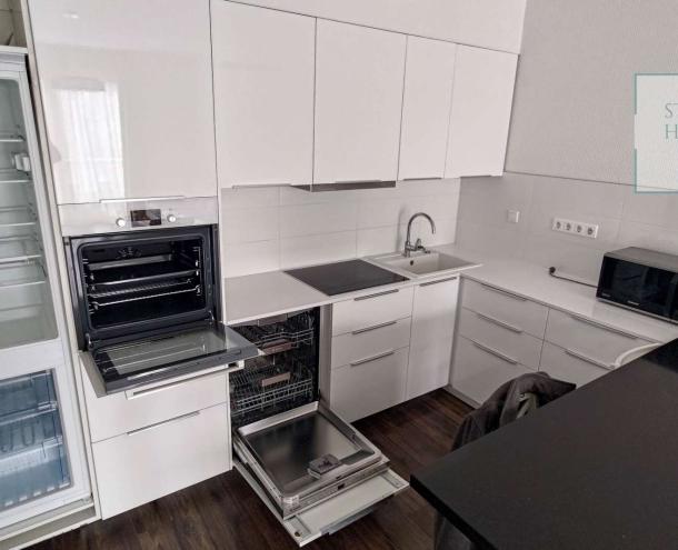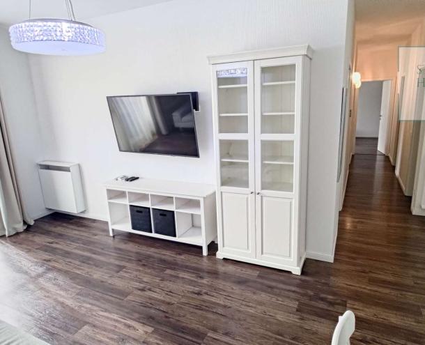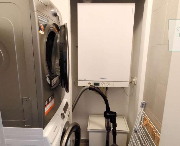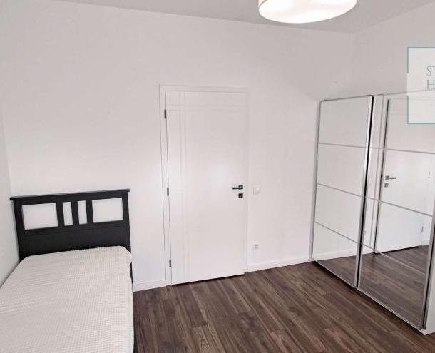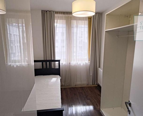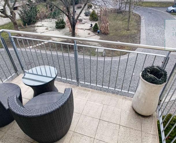 A lakás impozáns bútorokkal és a legmodernebb háztartási gépekkel van felszerelve, így azonnal beköltözhető és élvezheti a kényelmet. Az ingatlan további extrákat kínál, mint például légkondicionálás, 24 órás portaszolgálat, valamint egy gyönyörű, automata öntözőberendezéssel ellátott közös kert. A lakópark saját játszóteret és kültéri parkolót is biztosít, emellett lifttel is rendelkezik.