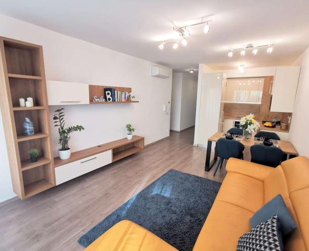 2022-ben épült többlakásos, portaszolgálatos társasház 70 nm-es teljesen felszerelt bútorozott lakása kiadó. A lakásban az amerikai konyhás nappalin kívül 2 hálószoba és 2 fürdőszoba (zuhanyzós és kádas) található. A hálószobák a csendes belső kertre néznek. A képeken látható bútorokkal van berendezve. Közös költség 34.000,- Ft. A lakásban a meleget a ház központi fűtés szolgáltatja egyedi mérőkkel ellátva. Kistermetű kutya jöhet, macska nem. Egy autónak garázs bérelhető a teremgarázsban. A lakás azonnal költözhető. Alaprajz.